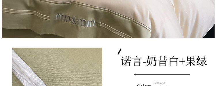 商品名称:品格家纺 高支全棉宽边刺绣床上四件套 奶昔白+果绿(适用于1.5米-1.8米床铺)