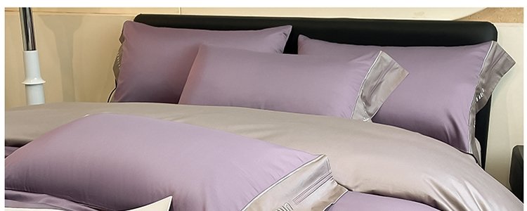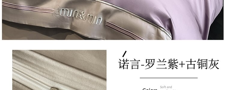 商品名称:品格家纺 高支全棉宽边刺绣床上四件套 罗兰紫+古铜灰(适用于1.5米-1.8米床铺)