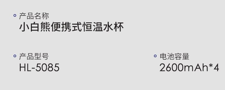 商品名称:小白熊 便携式恒温水杯-500ml/PP(型号:HL-5085)含快充适配器