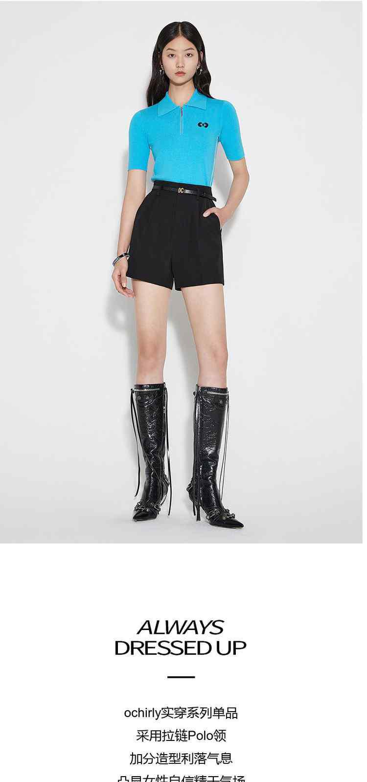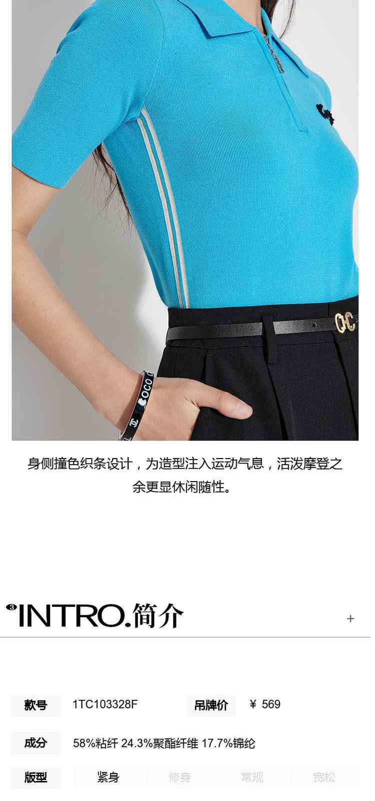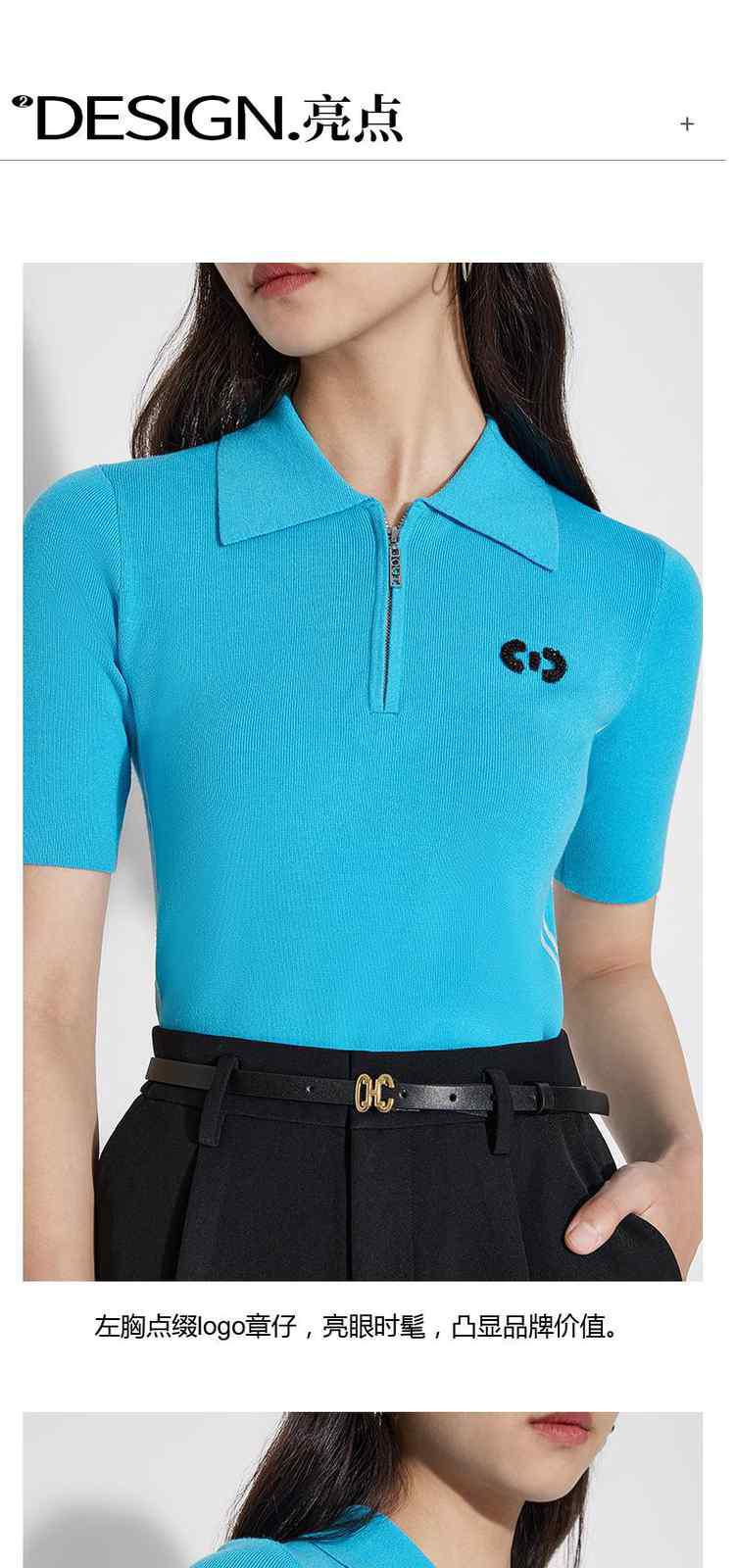 商品名称:春装 章仔撞条运动风Polo领短袖针织衫女 662991