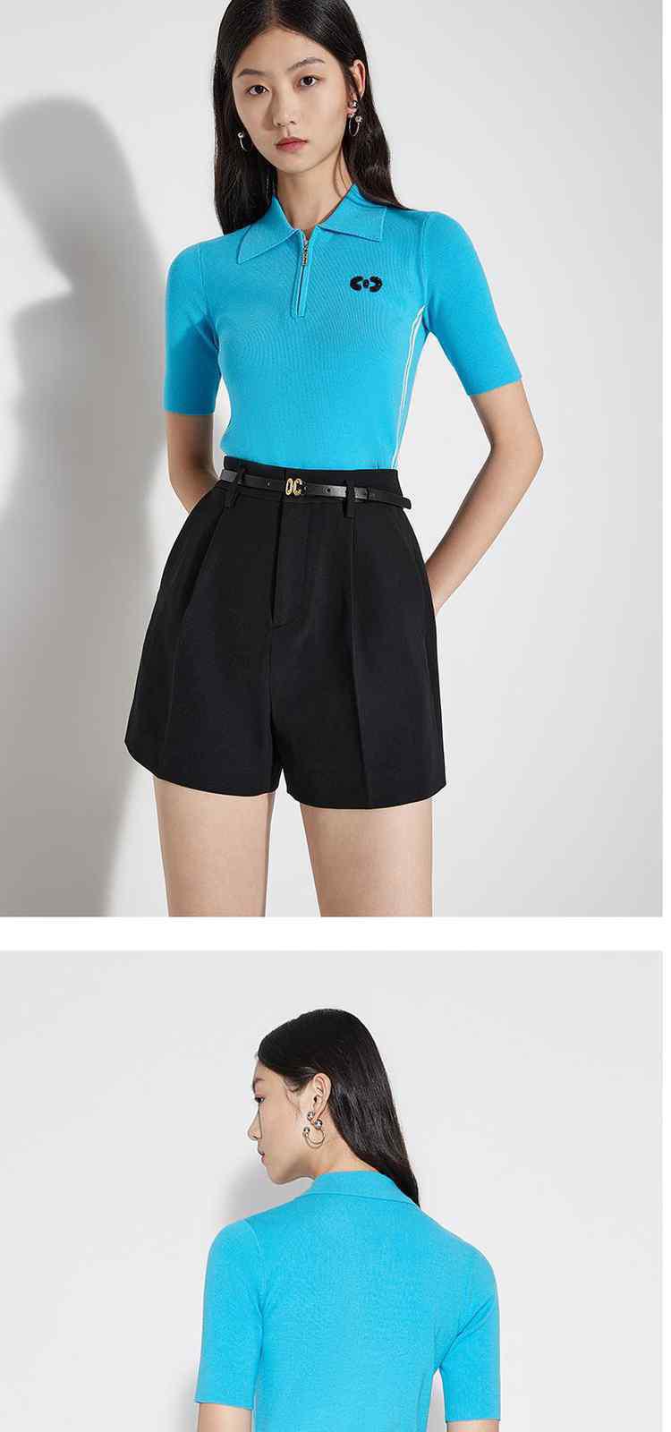 春装 章仔撞条运动风Polo领短袖针织衫女 662991
