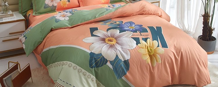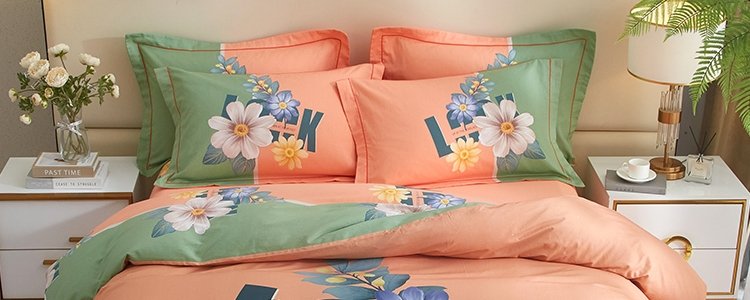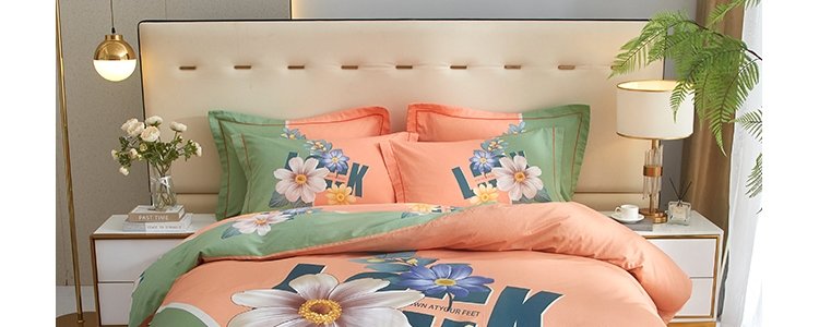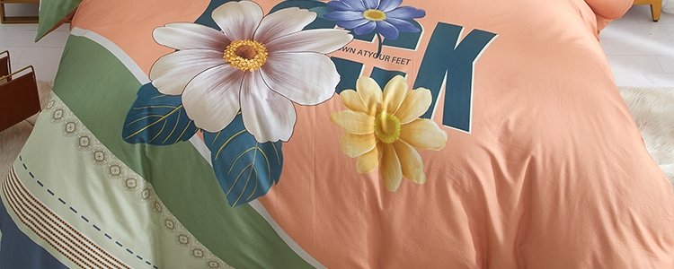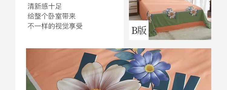 商品名称:豆豆羊家纺 纯棉印花四件套 花簇-桔(适用于1.5-1.8床)