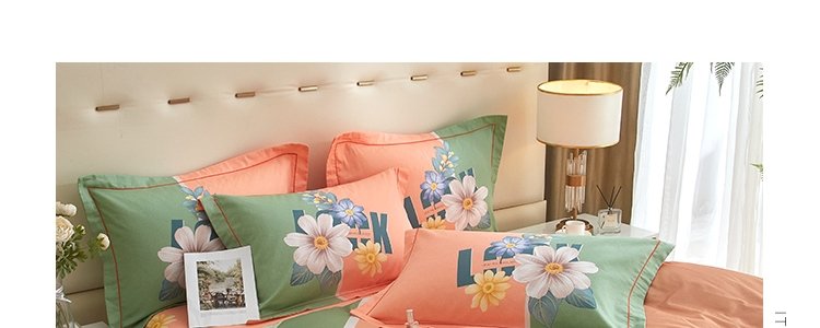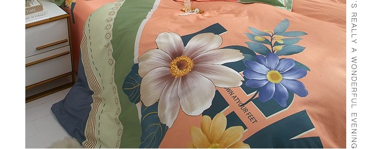 豆豆羊家纺 纯棉印花四件套 花簇-桔(适用于1.5-1.8床)