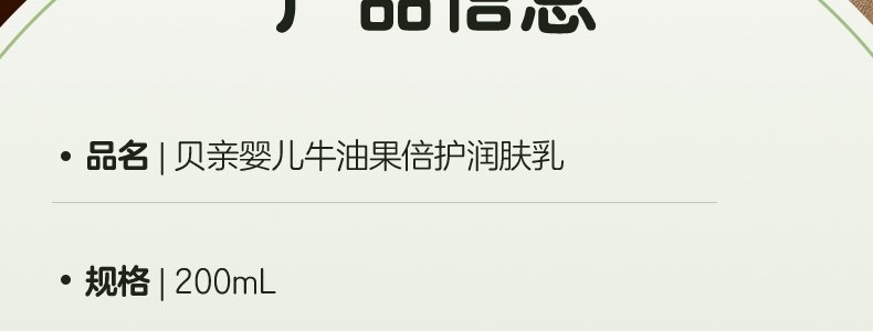 商品名称:贝亲(Pegion)婴儿牛油果倍护润肤乳 新版本 200ml IA295
