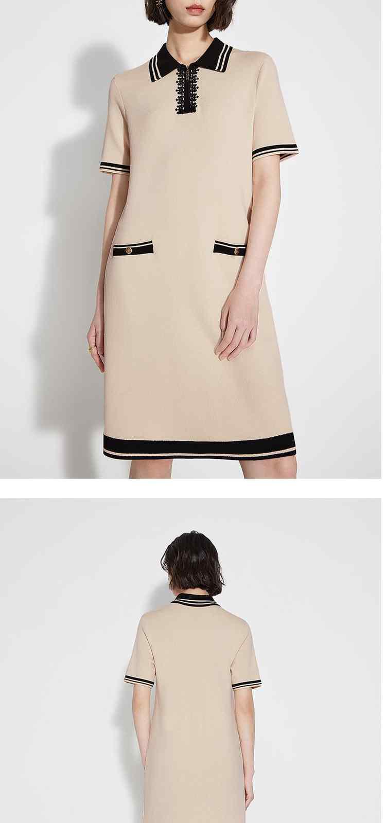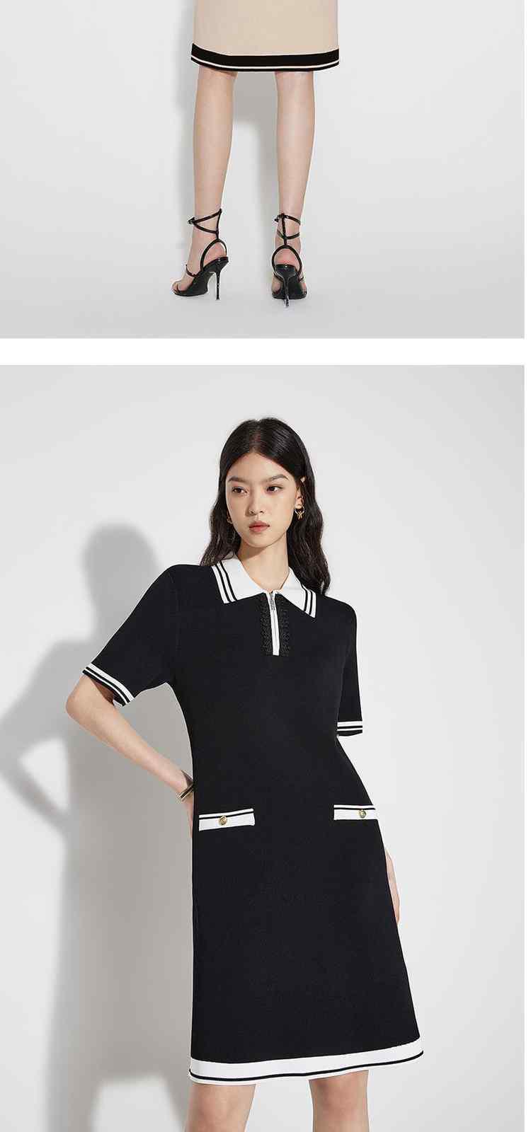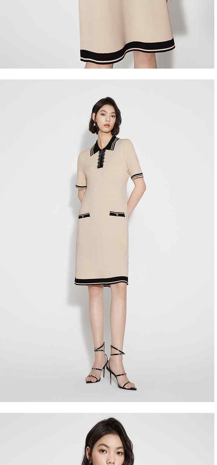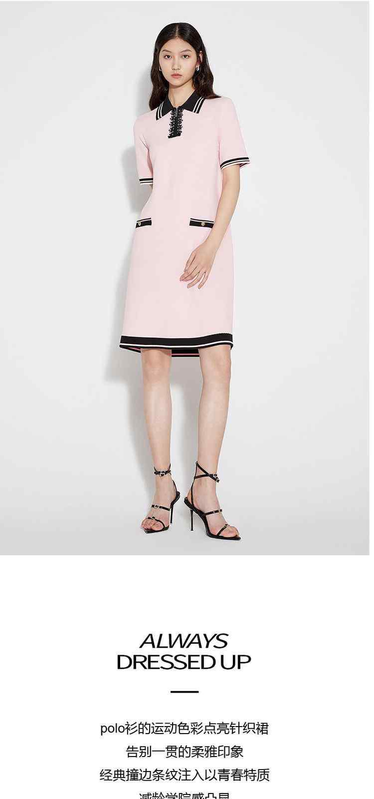 商品名称:春装 撞色设计感学院风polo领针织连衣裙女 713679