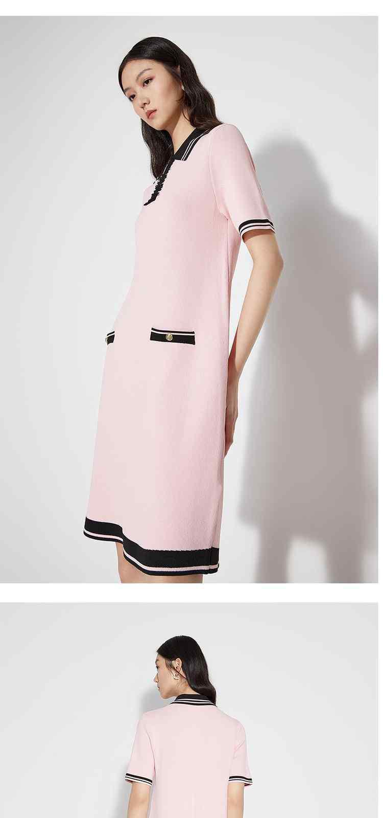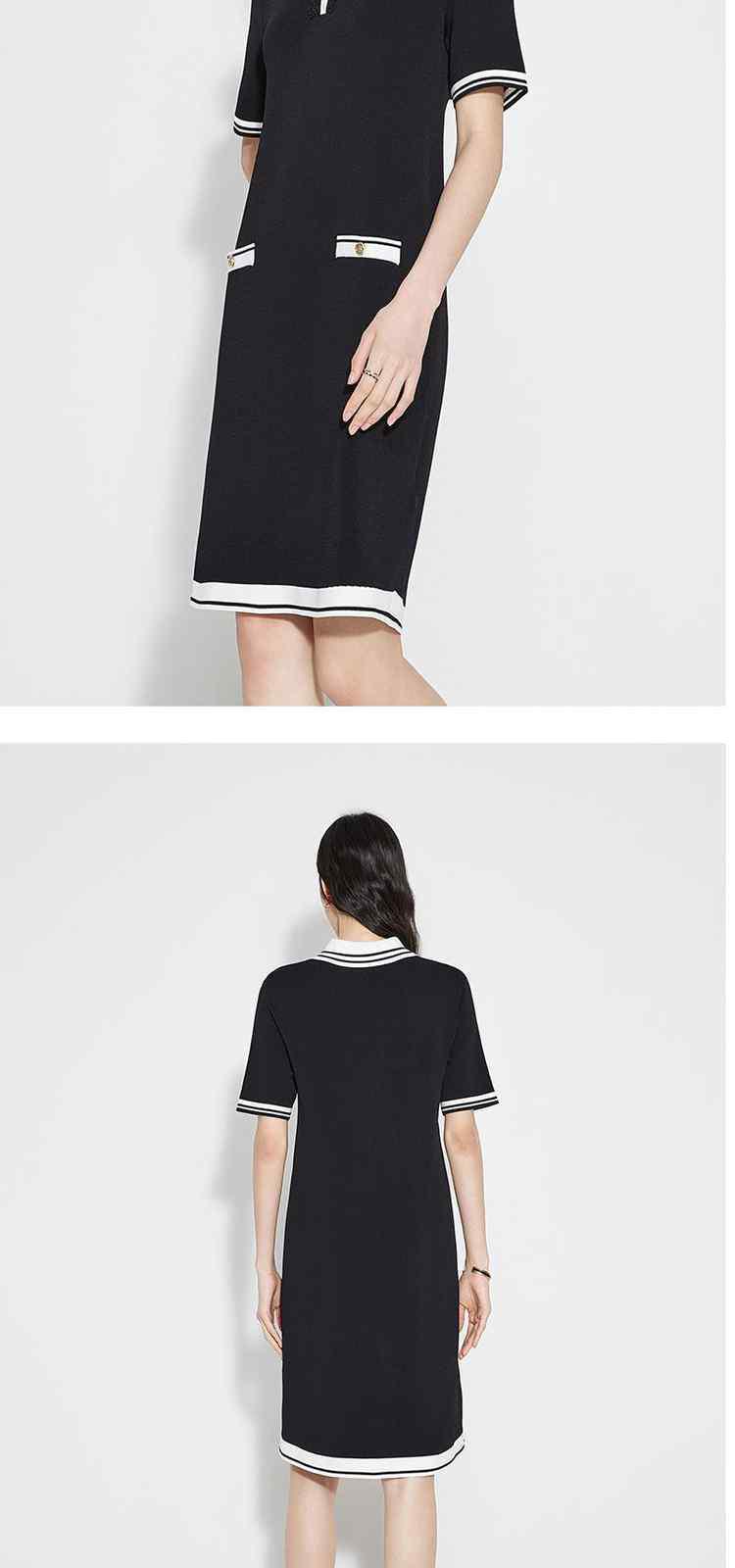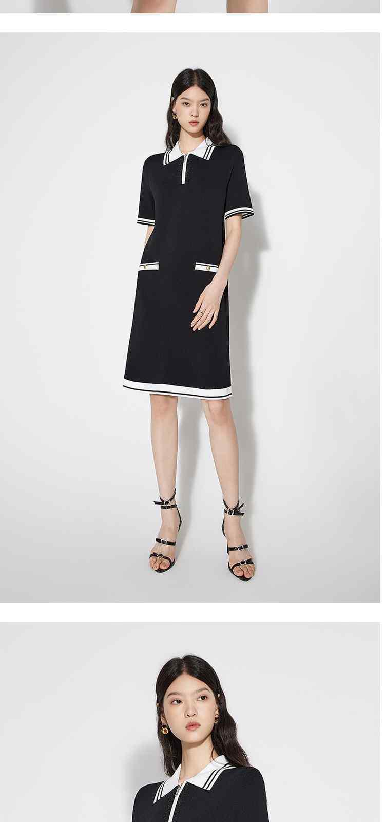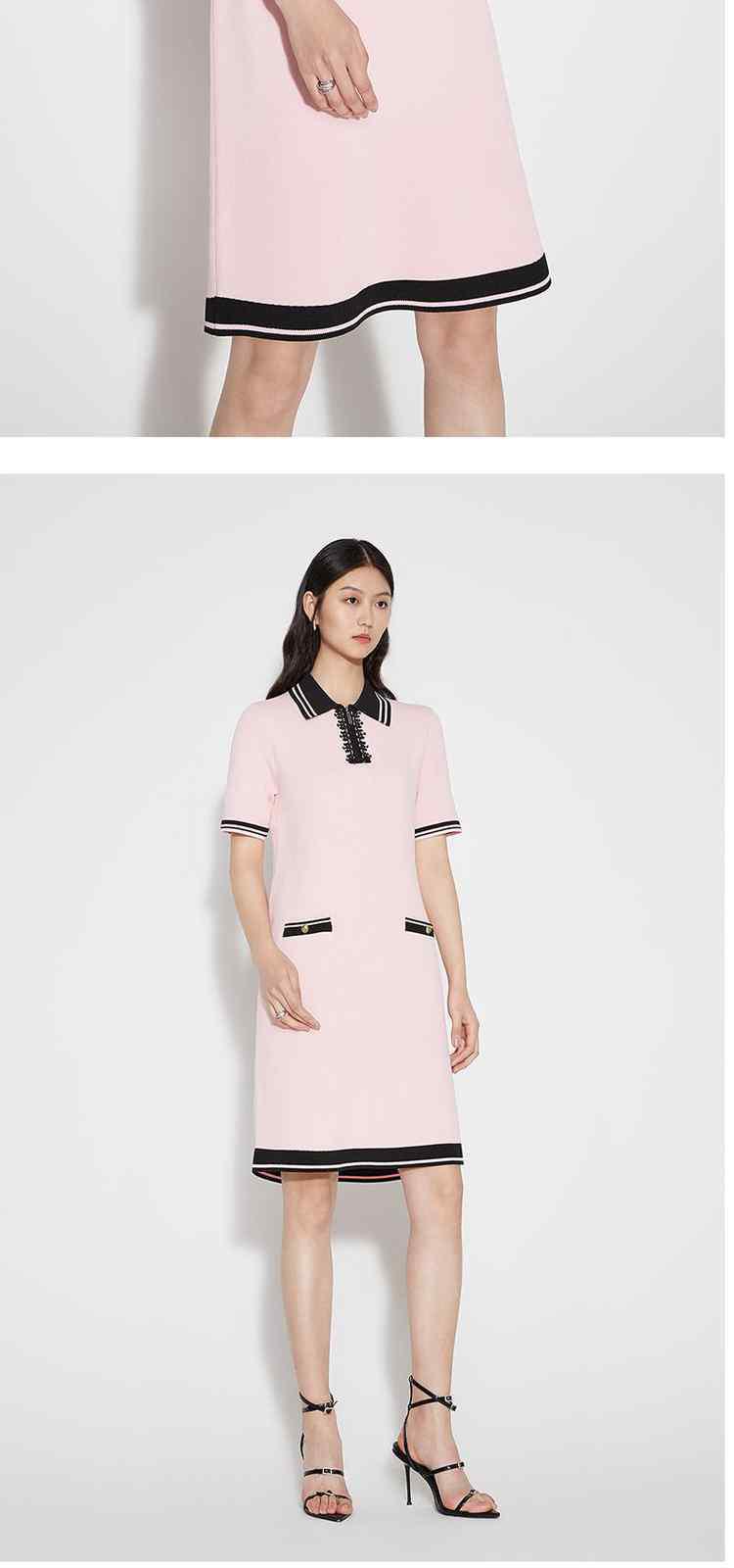 商品名称:春装 撞色设计感学院风polo领针织连衣裙女 713679