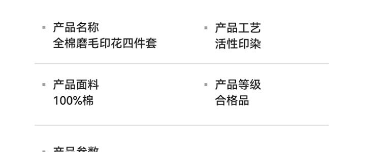 商品名称:品格家纺 全棉磨毛印花四件套 米雪(适用于1.5-1.8米床铺)