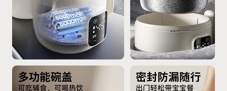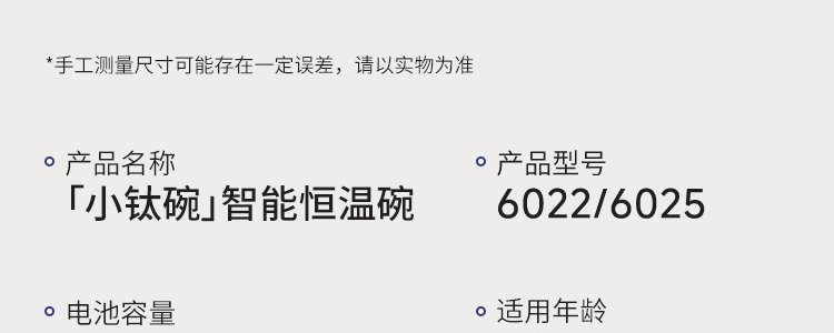 商品名称:【新款】小白熊智能恒温保温碗-钛钢内胆(型号HL-6025)含快充适配器