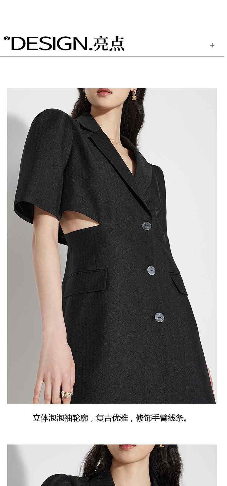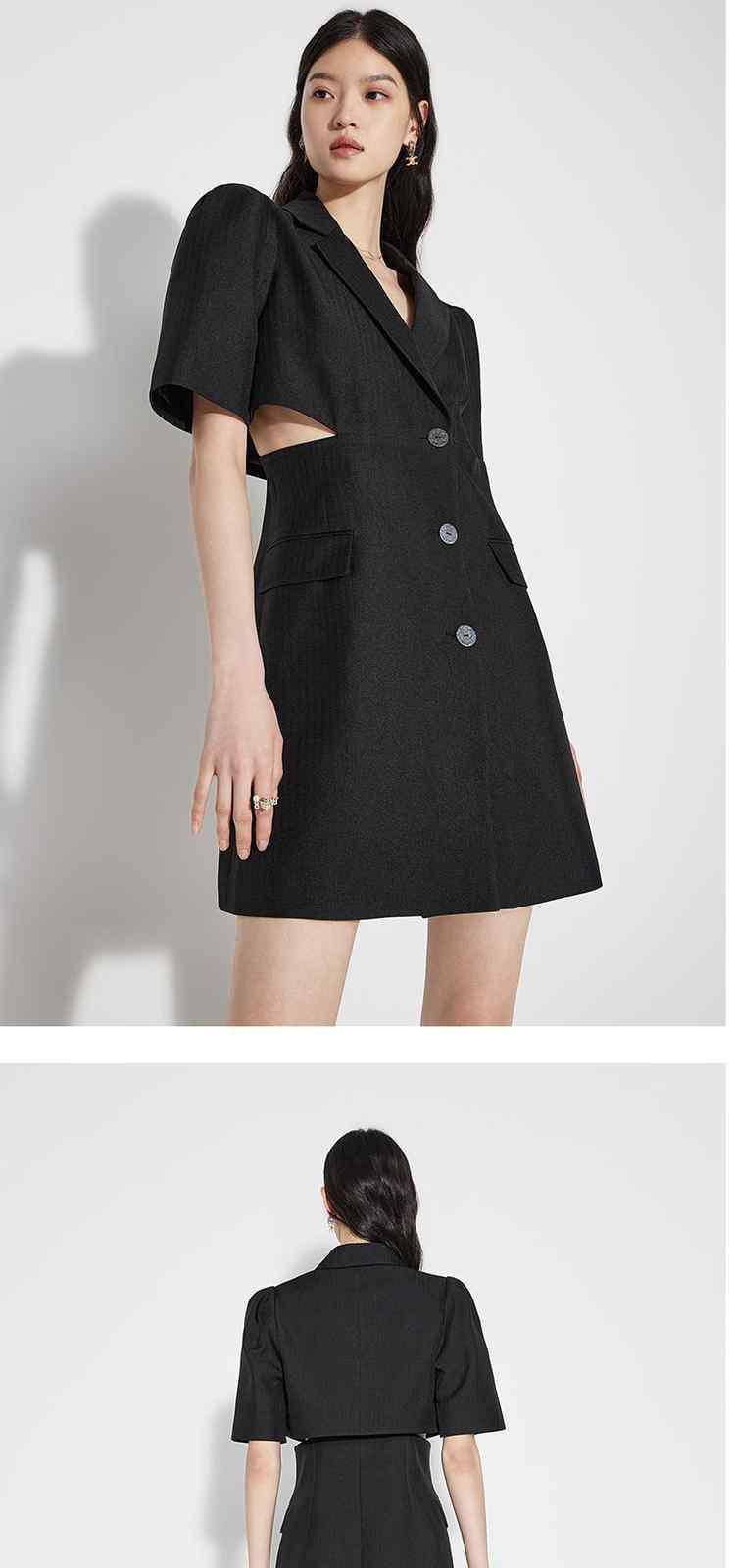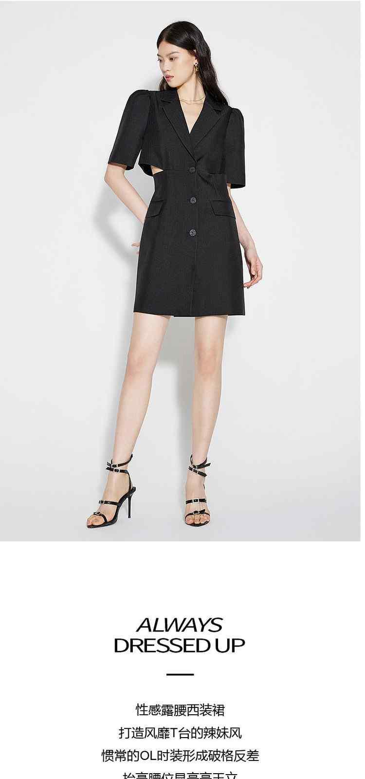 商品名称:春装 辣妹风镂空露腰人字纹提花西装连衣裙 091279