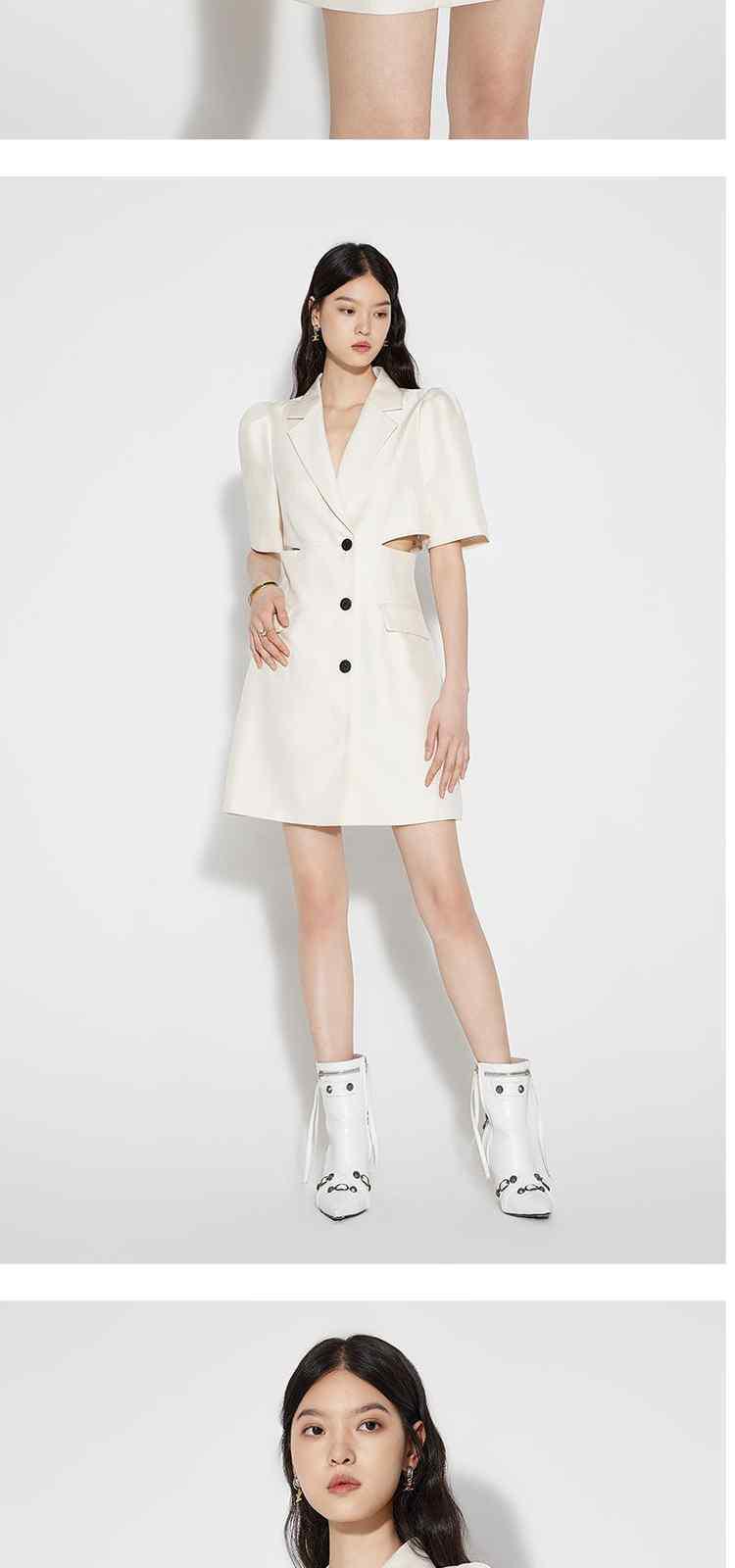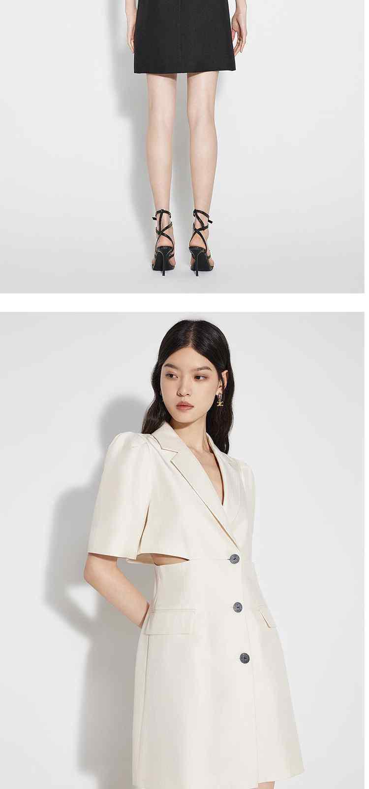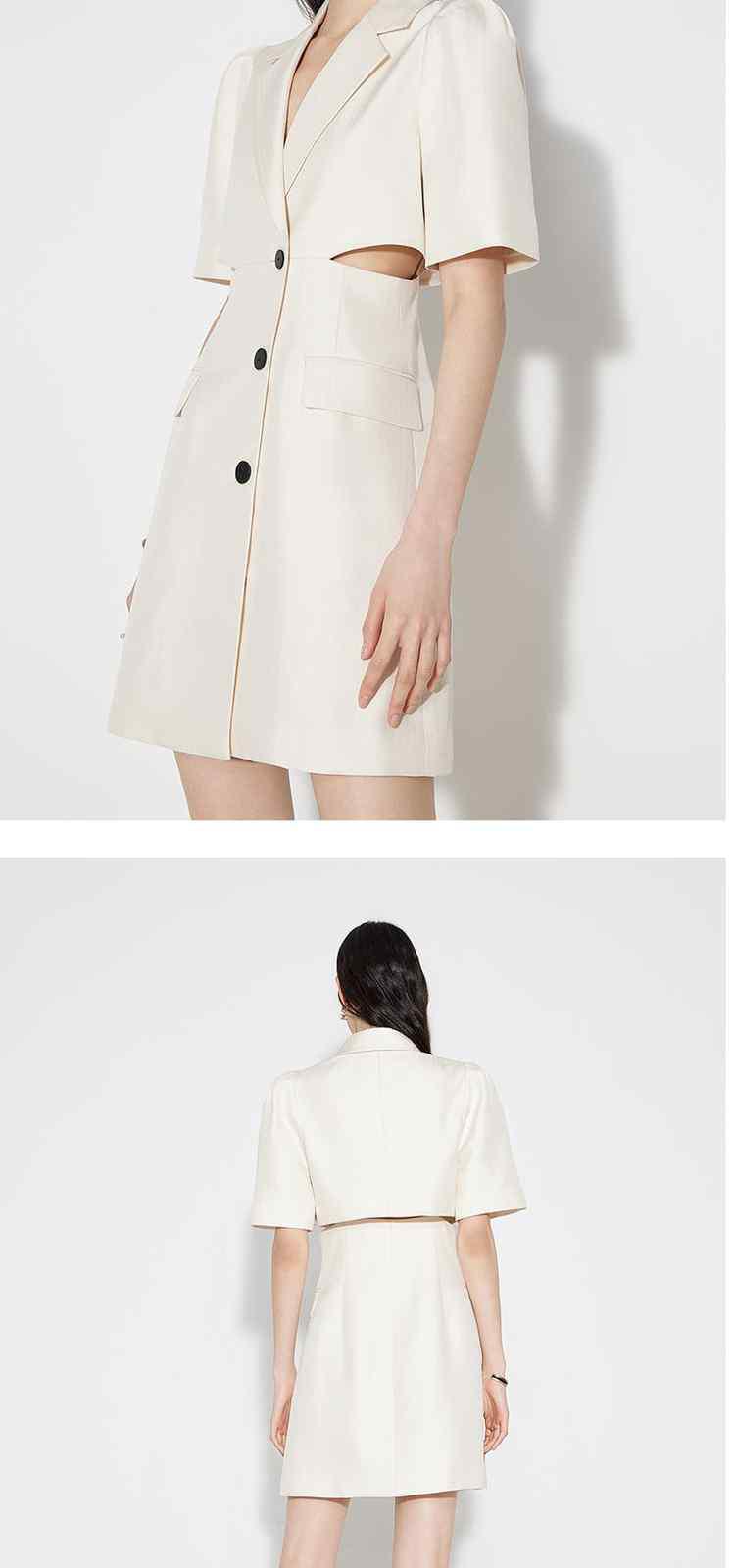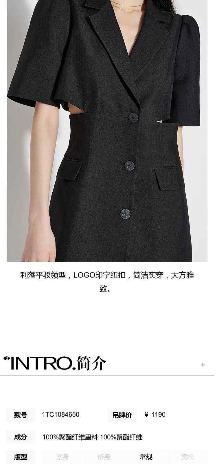 商品名称:春装 辣妹风镂空露腰人字纹提花西装连衣裙 091279