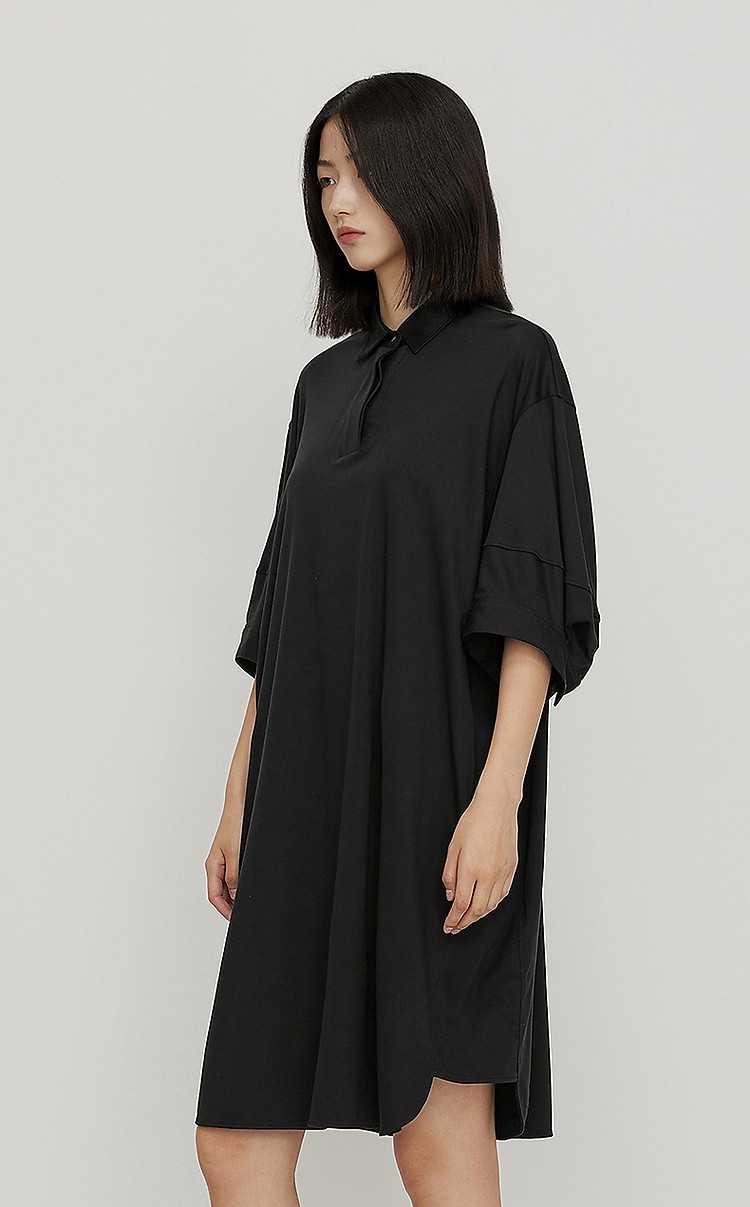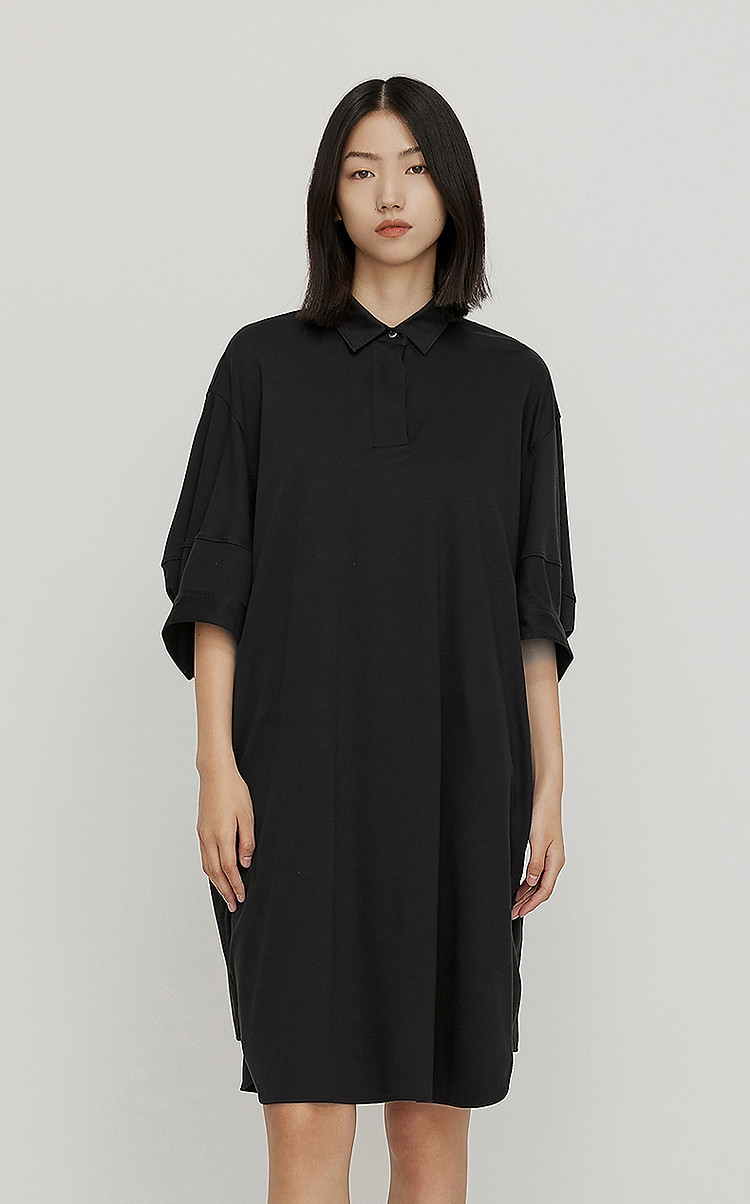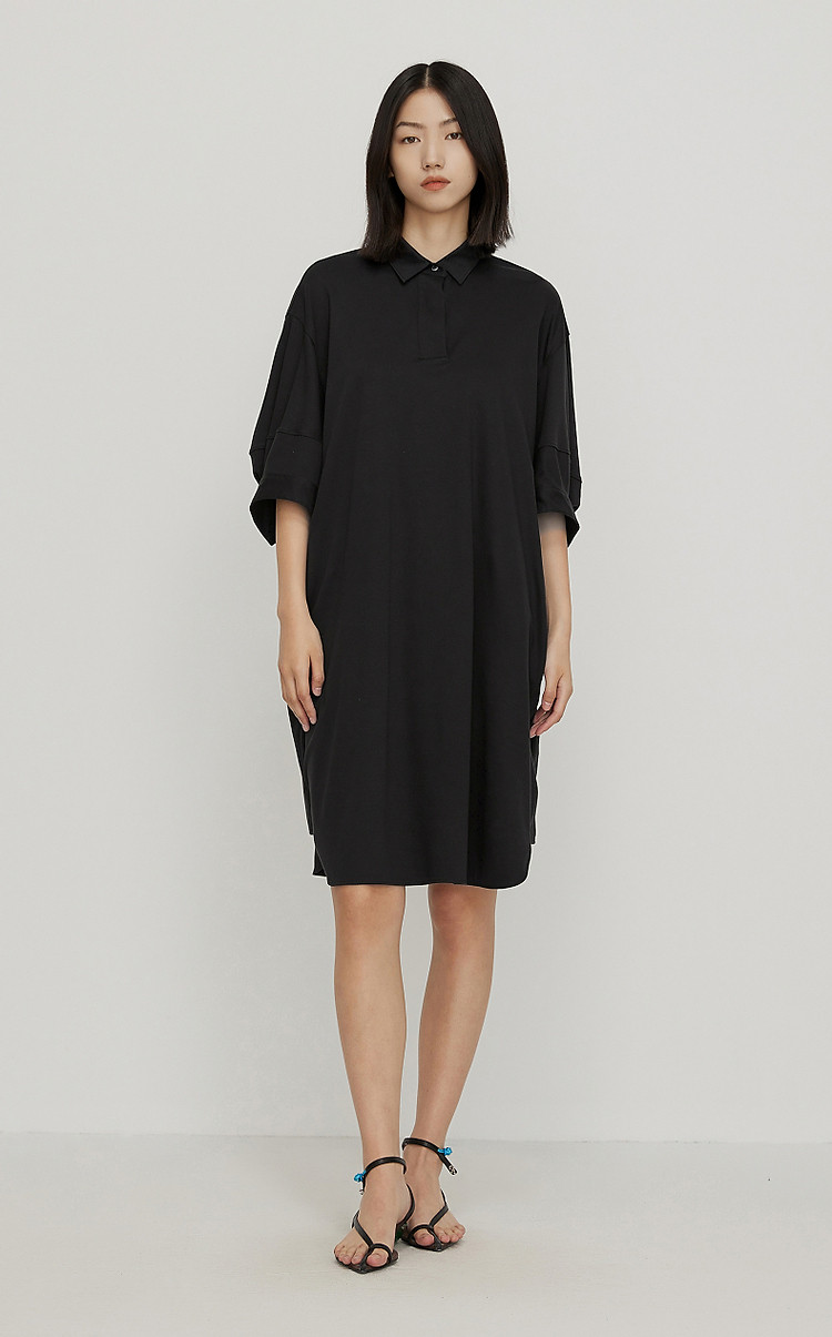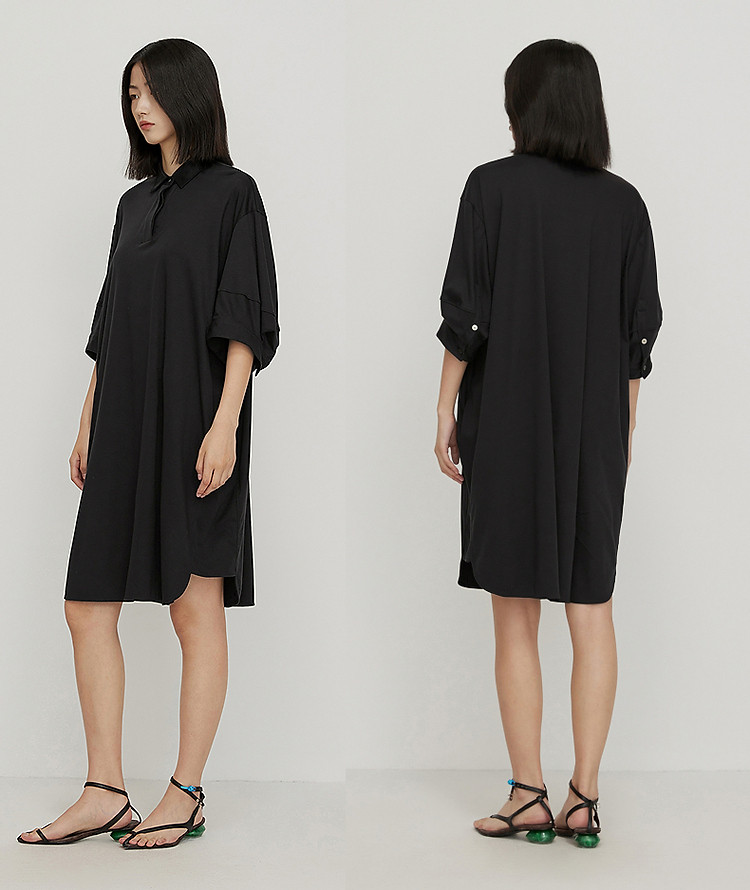 夏连衣裙宽松翻领A型裙装女 081547