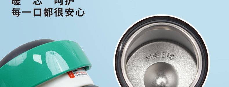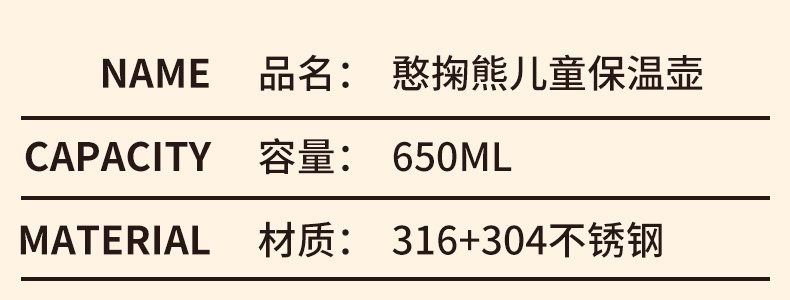 商品名称:优美家 憨掬熊儿童保温壶 650ML 白绿配