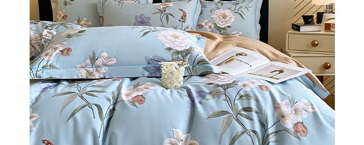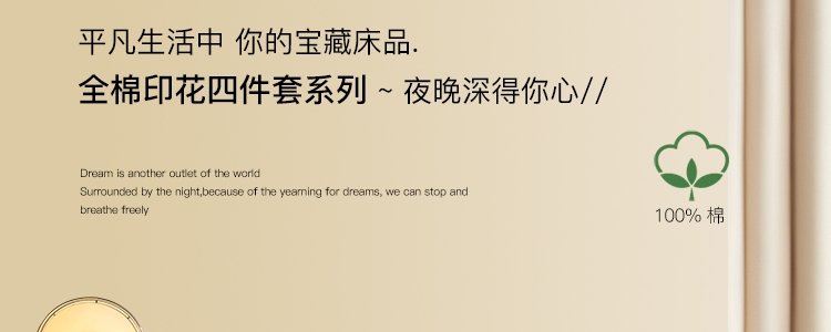 豆豆羊家纺 13376纯棉印花四件套 暖熙-兰(适用于1.5-1.8床铺)