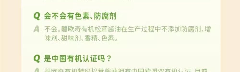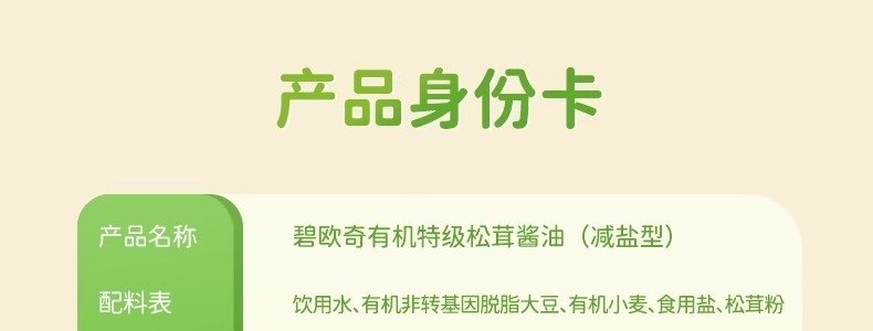 商品名称:碧欧奇 有机特级松茸酱油(减盐型)100ml