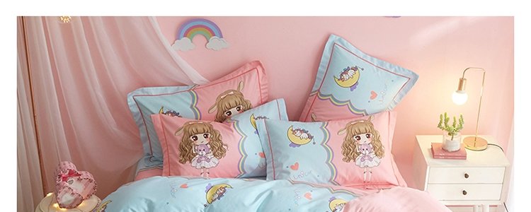 豆豆羊家纺 纯棉印花四件套 晚安宝贝(适用于1.5-1.8床)