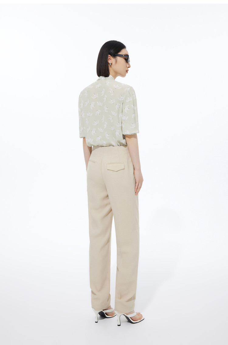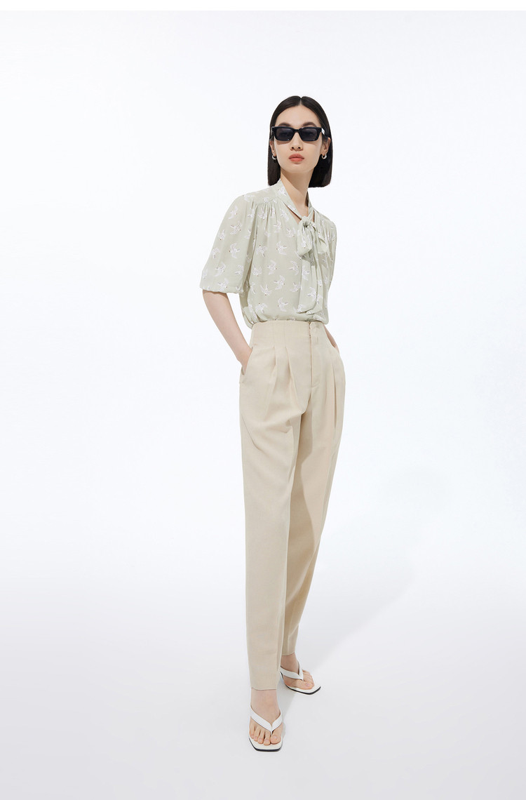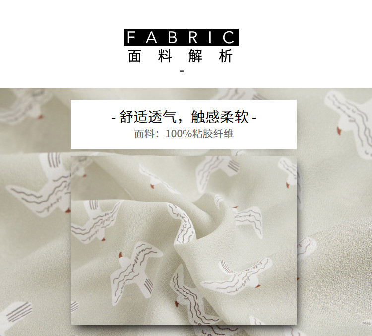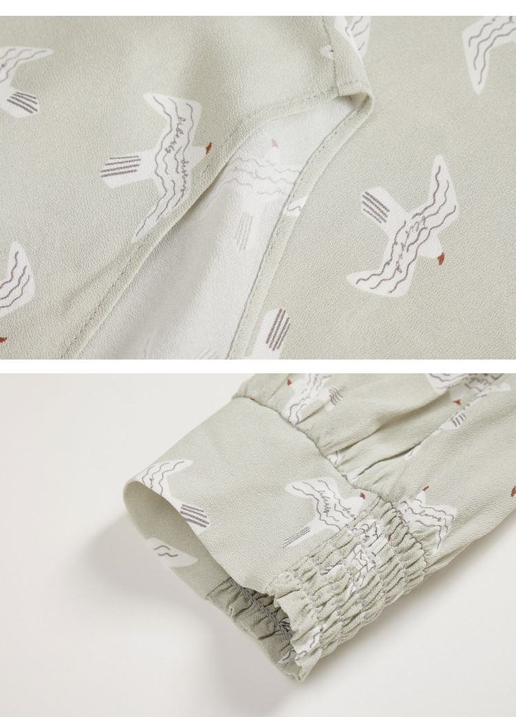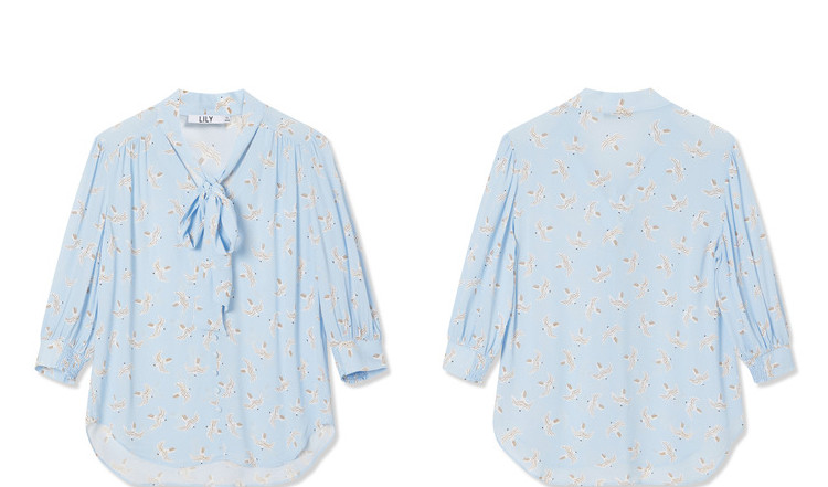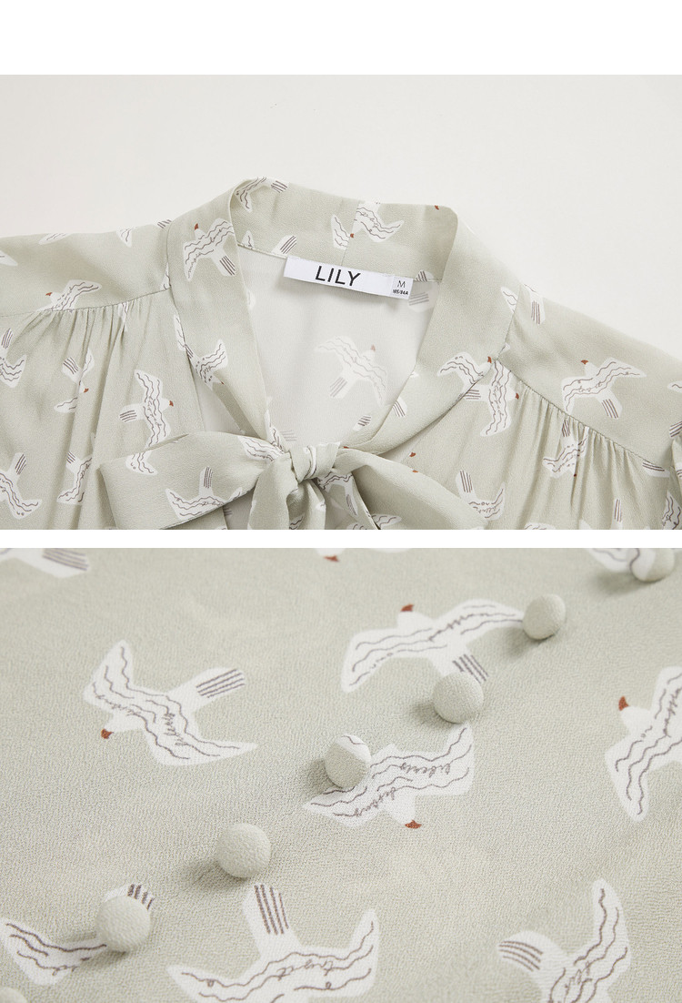 商品名称:【薄荷曼波】春季上衣女垂坠人丝印花飘带舒适宽松七分袖衬衫女 493275