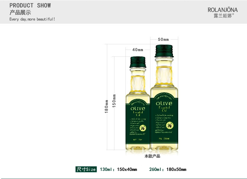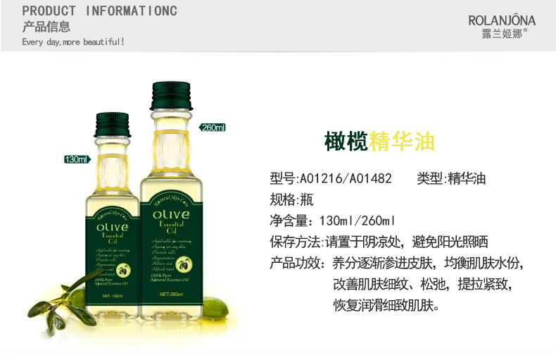 商品名称:露兰姬娜 橄榄精华油 深入渗透 滋养肌肤 130ml/260ml