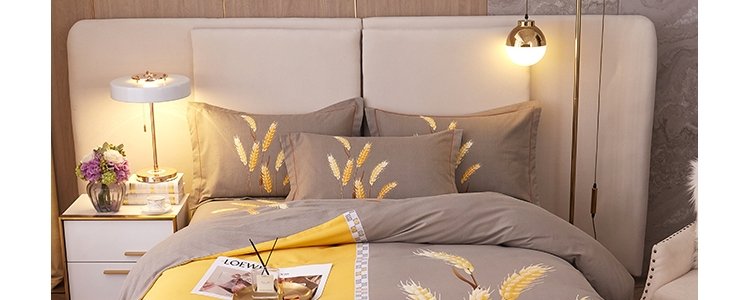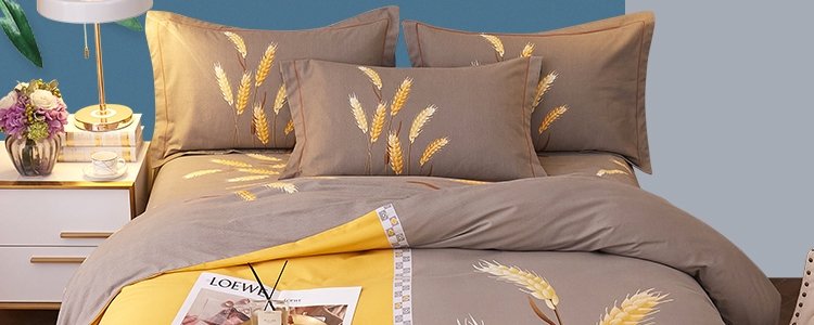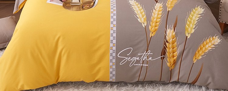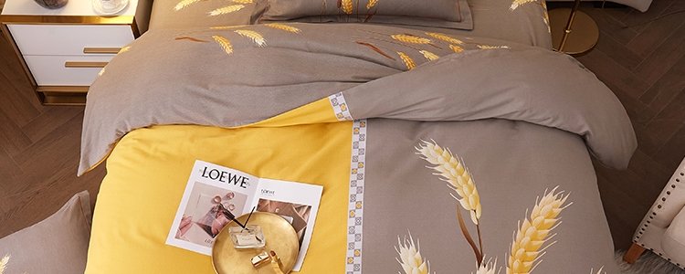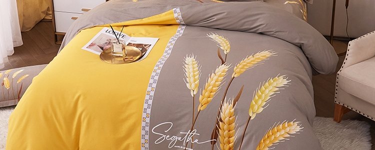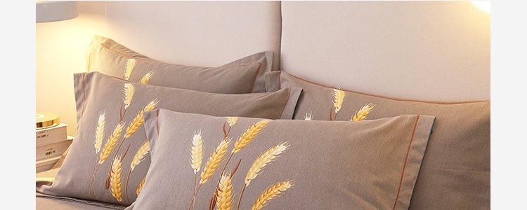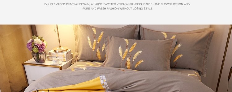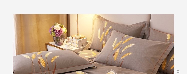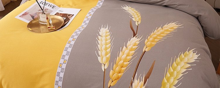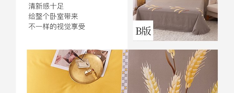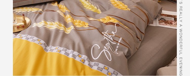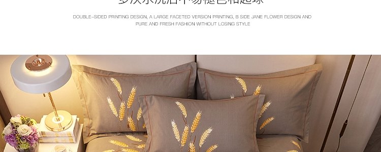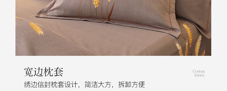 商品名称:豆豆羊家纺 全棉大版印花磨毛四件套 辉煌麦穗-黄(适用于1.5-1.8米床铺)