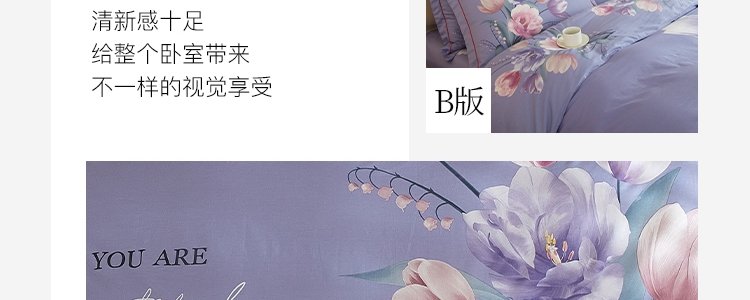 商品名称:豆豆羊家纺 纯棉印花四件套 花香溢彩-紫(适用于1.5-1.8床)