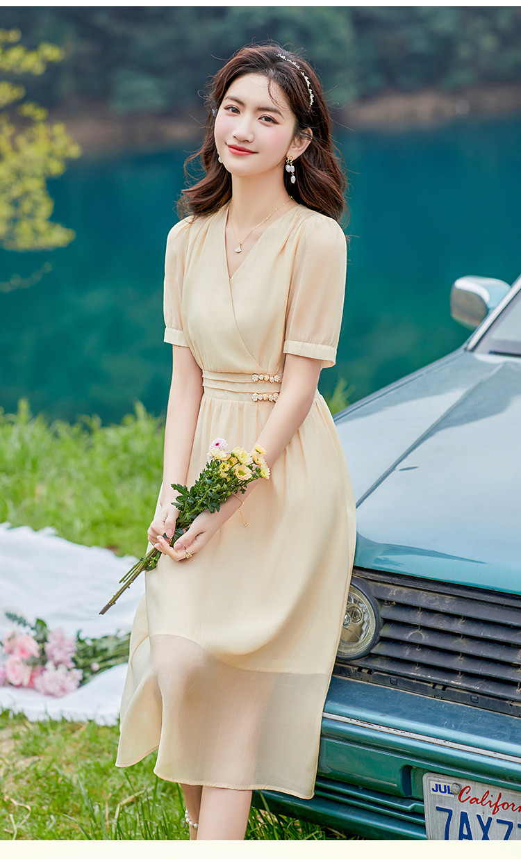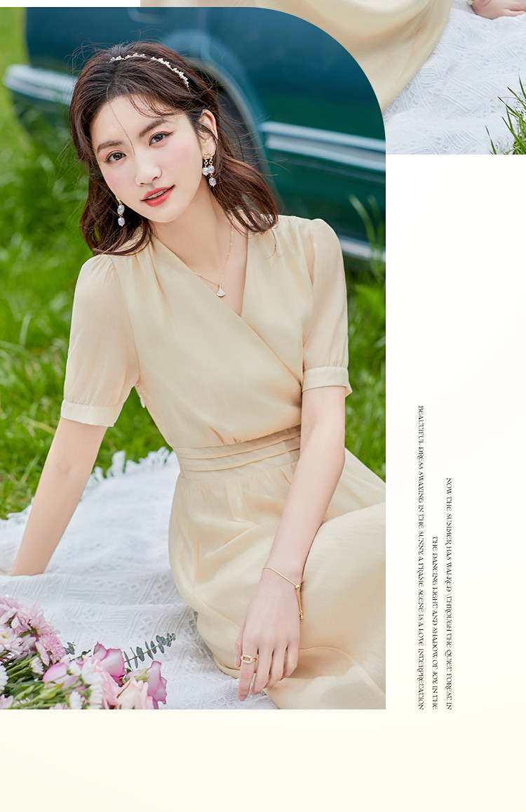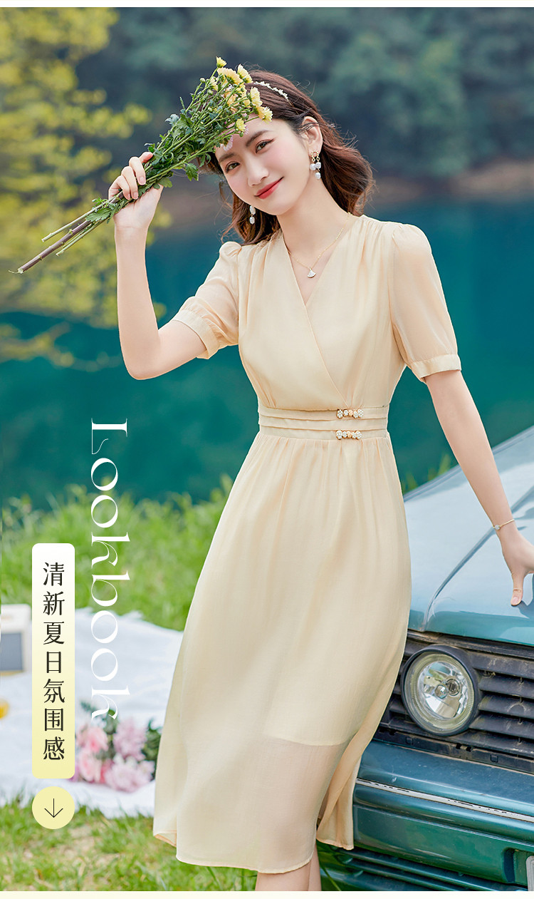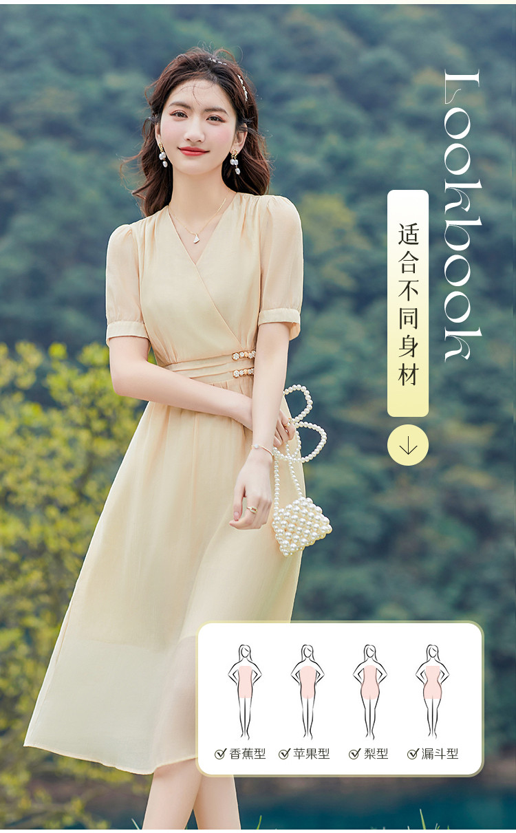 商品名称:莱赛尔天丝裙子夏日穿搭V领显瘦垂感连衣裙女 805528