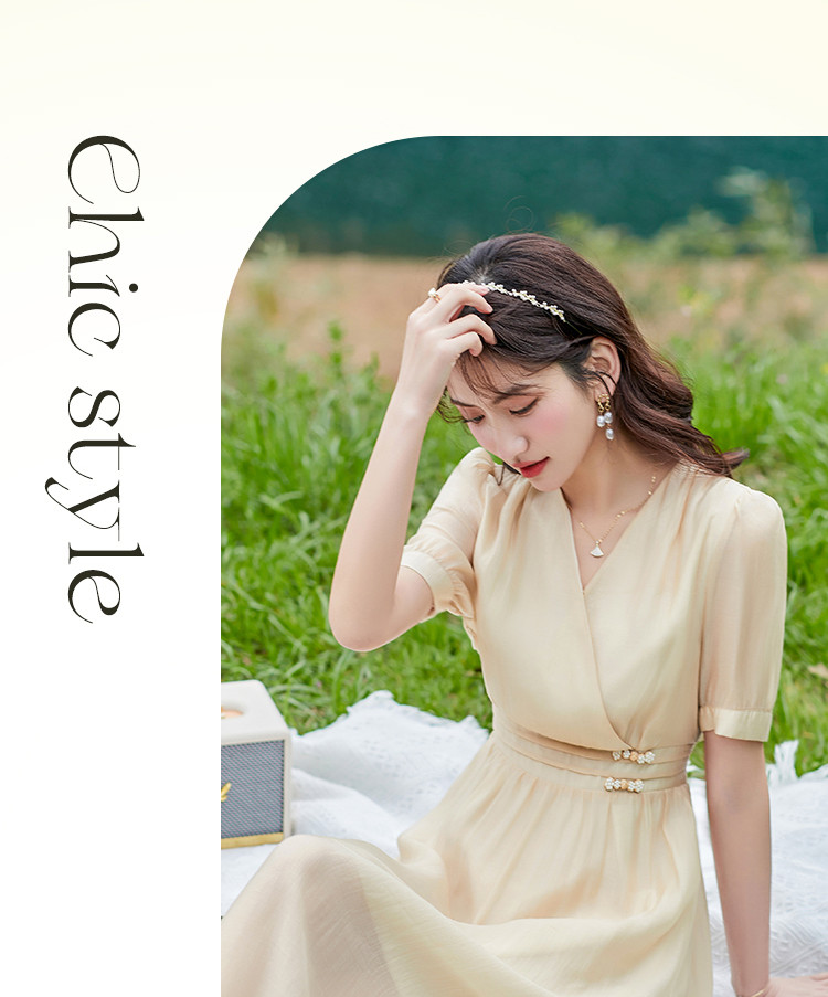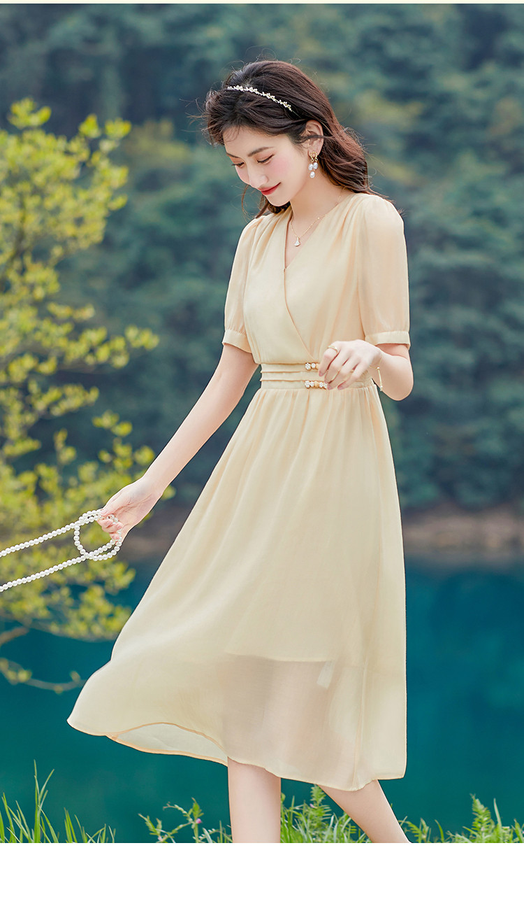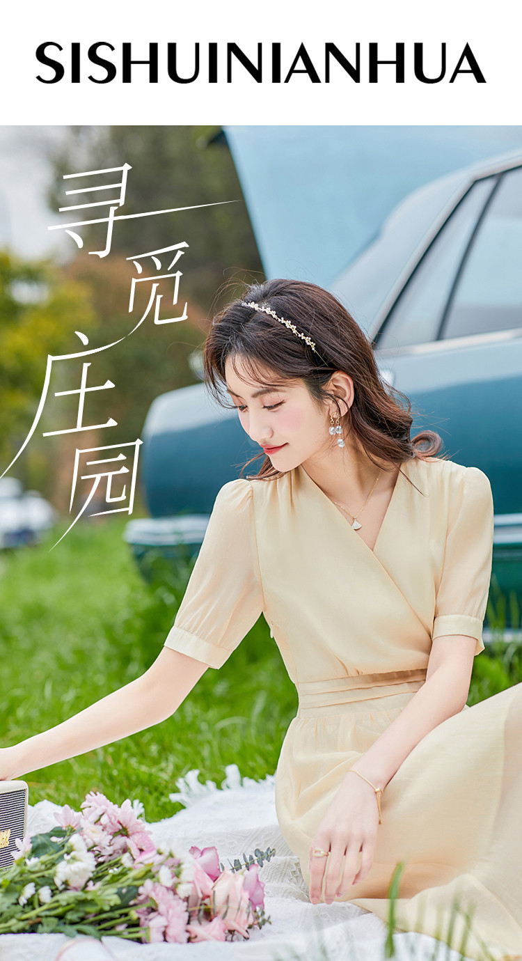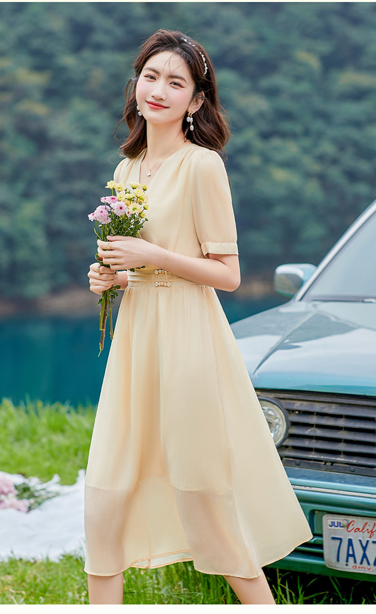 商品名称:莱赛尔天丝裙子夏日穿搭V领显瘦垂感连衣裙女 805528