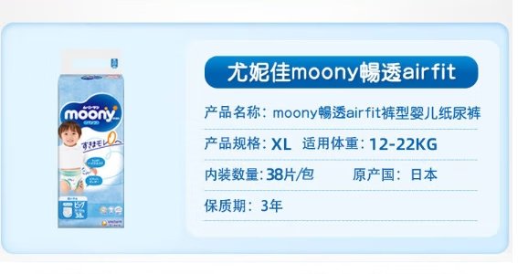 商品名称:日本 尤妮佳(moony)畅透微风系列全新升级纸尿裤 L54(9-14kg)男女通用