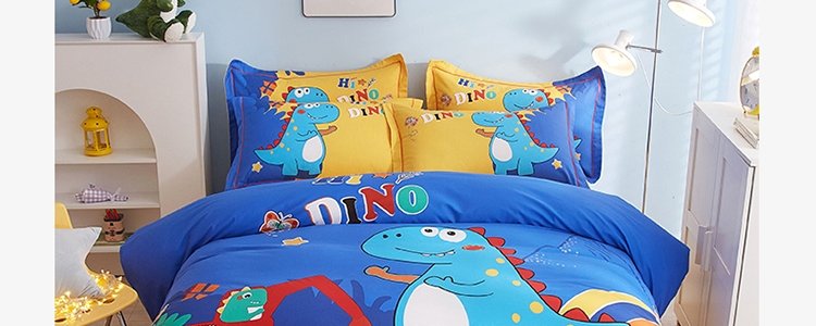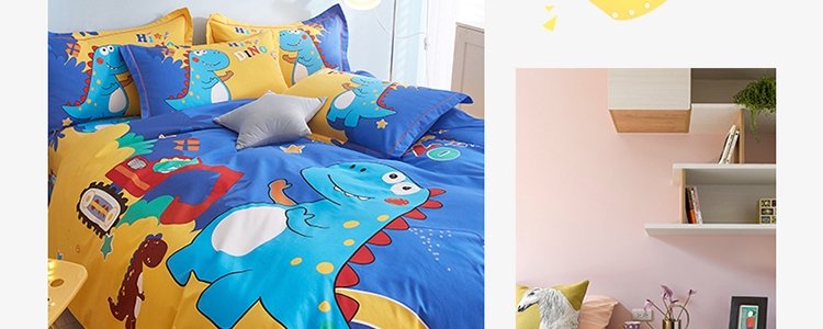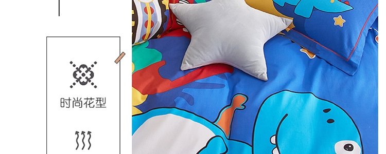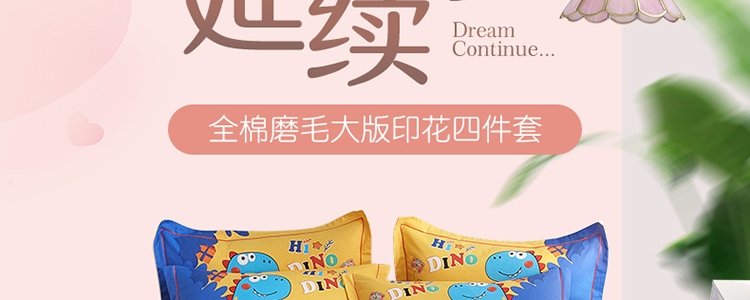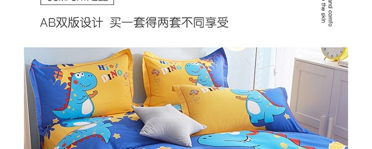 商品名称:豆豆羊家纺 全棉大版印花磨毛四件套 恐龙游记(适用于1.5-1.8米床铺)
