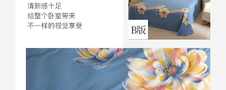 商品名称:豆豆羊家纺 全棉大版印花磨毛四件套 萱花(适用于1.5-1.8米床铺)