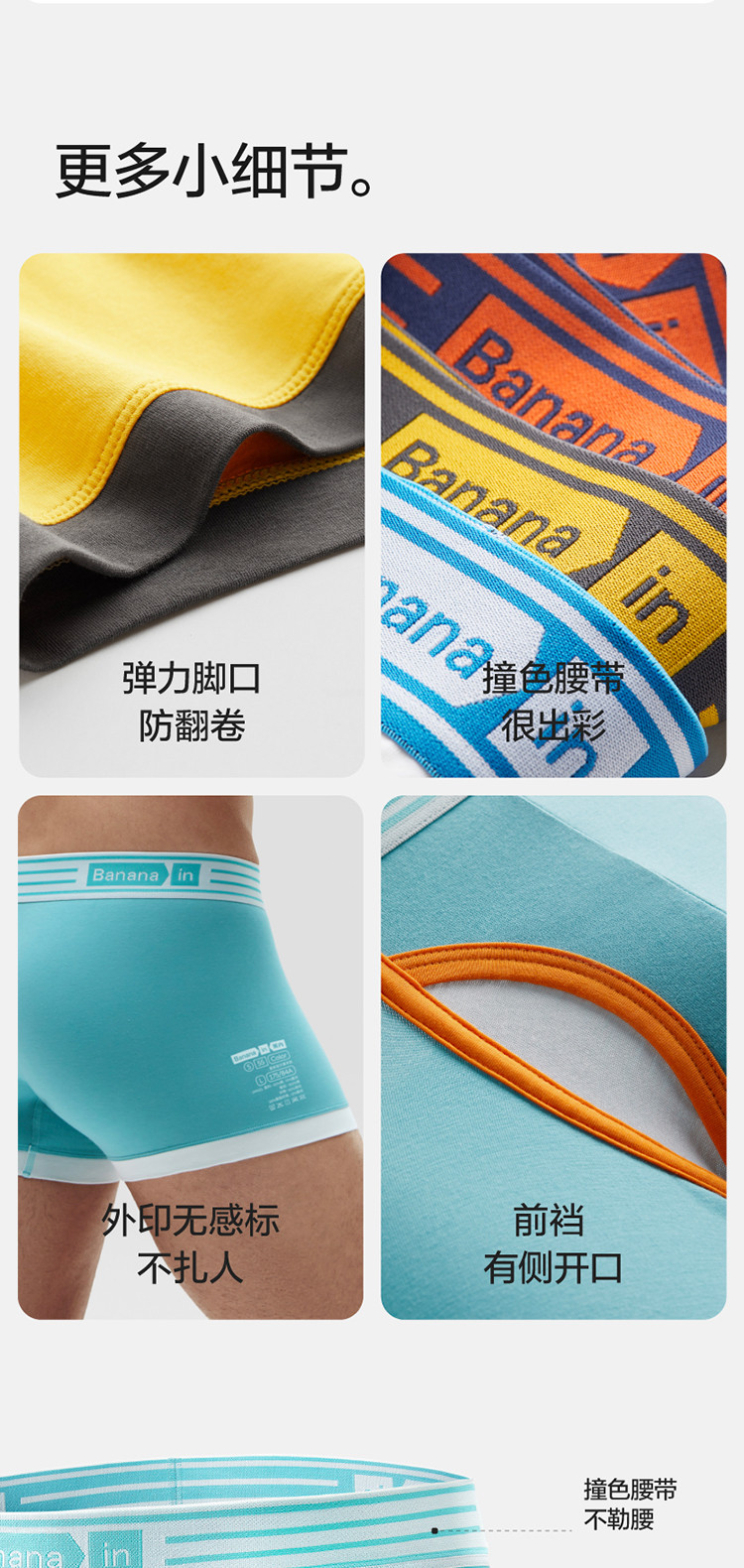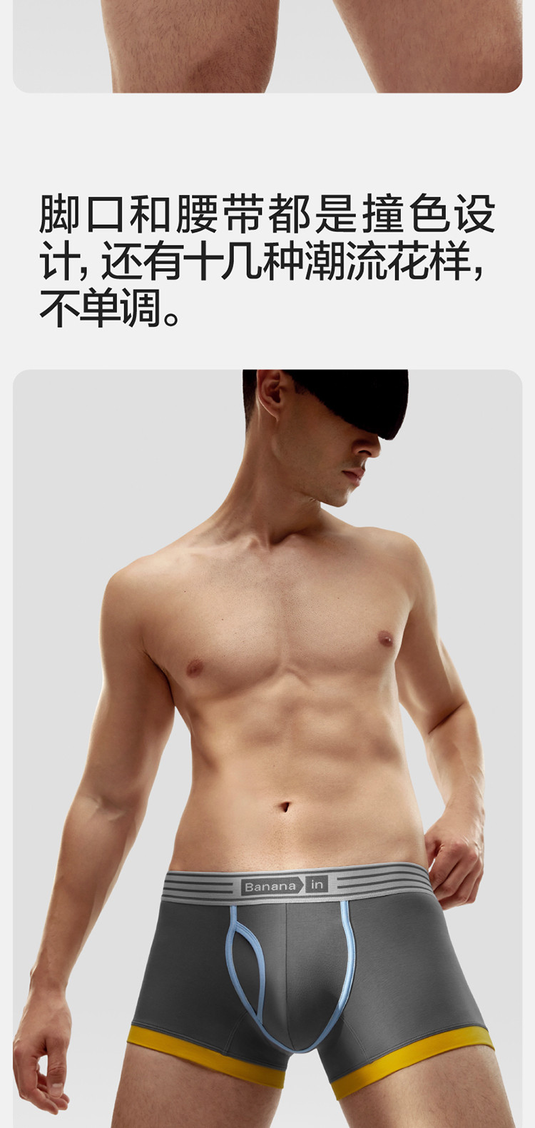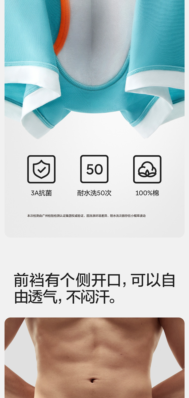 555C撞色男士内裤平角底档抗菌透气防夹臀四角短裤头3件 627013