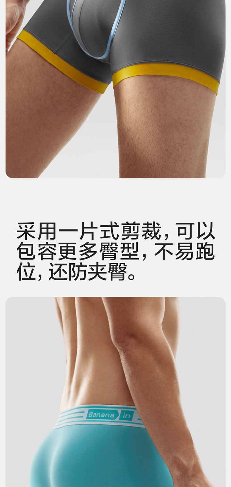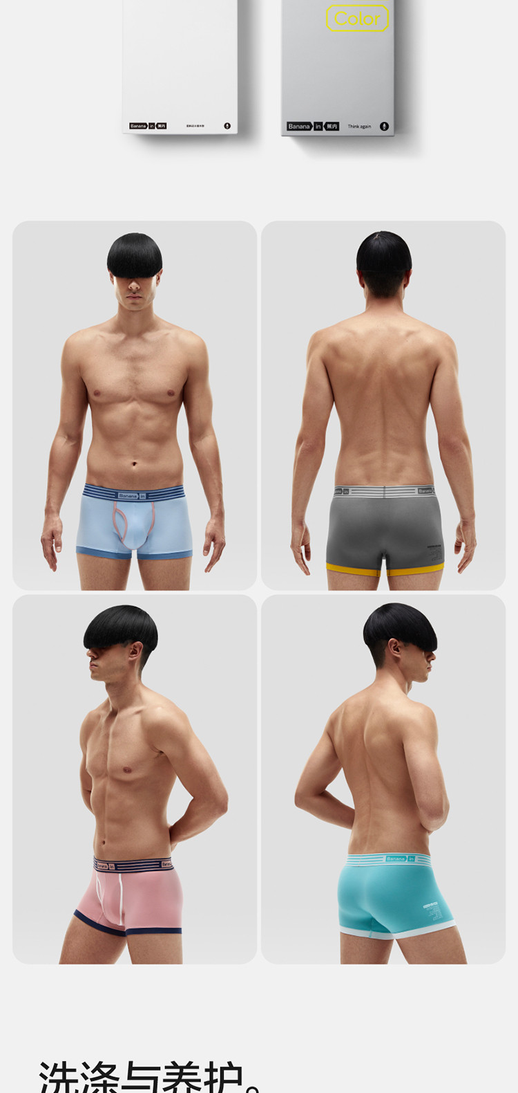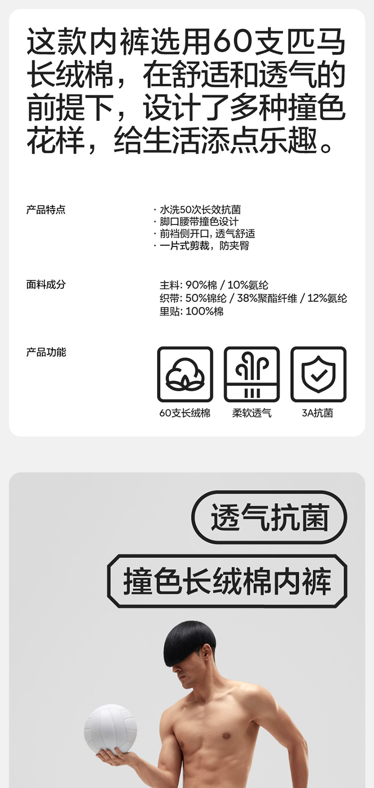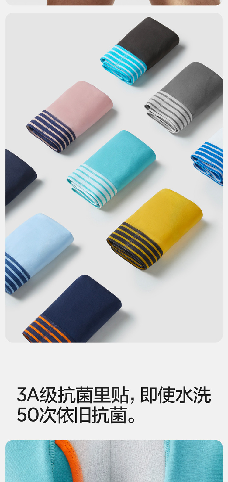 555C撞色男士内裤平角底档抗菌透气防夹臀四角短裤头3件 627013