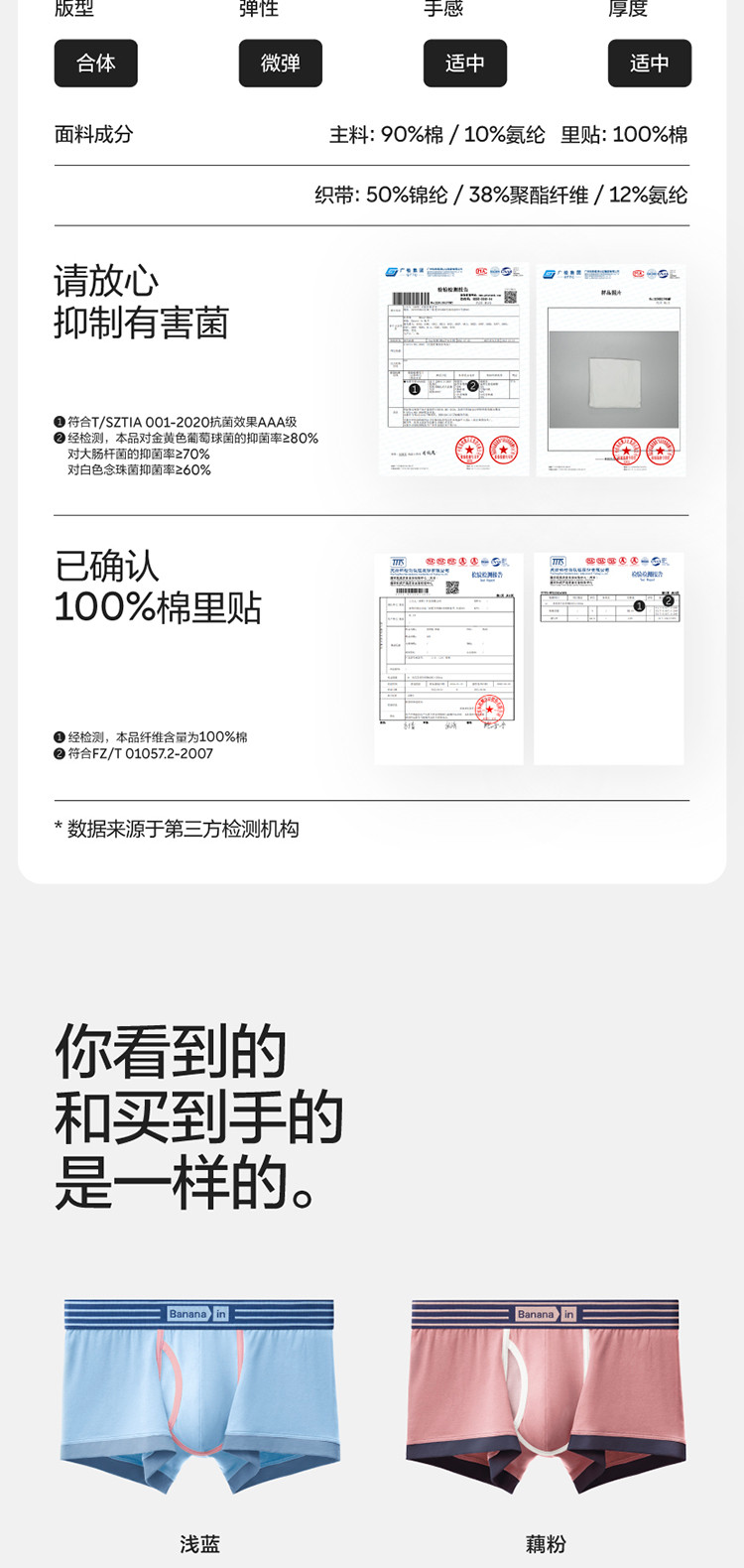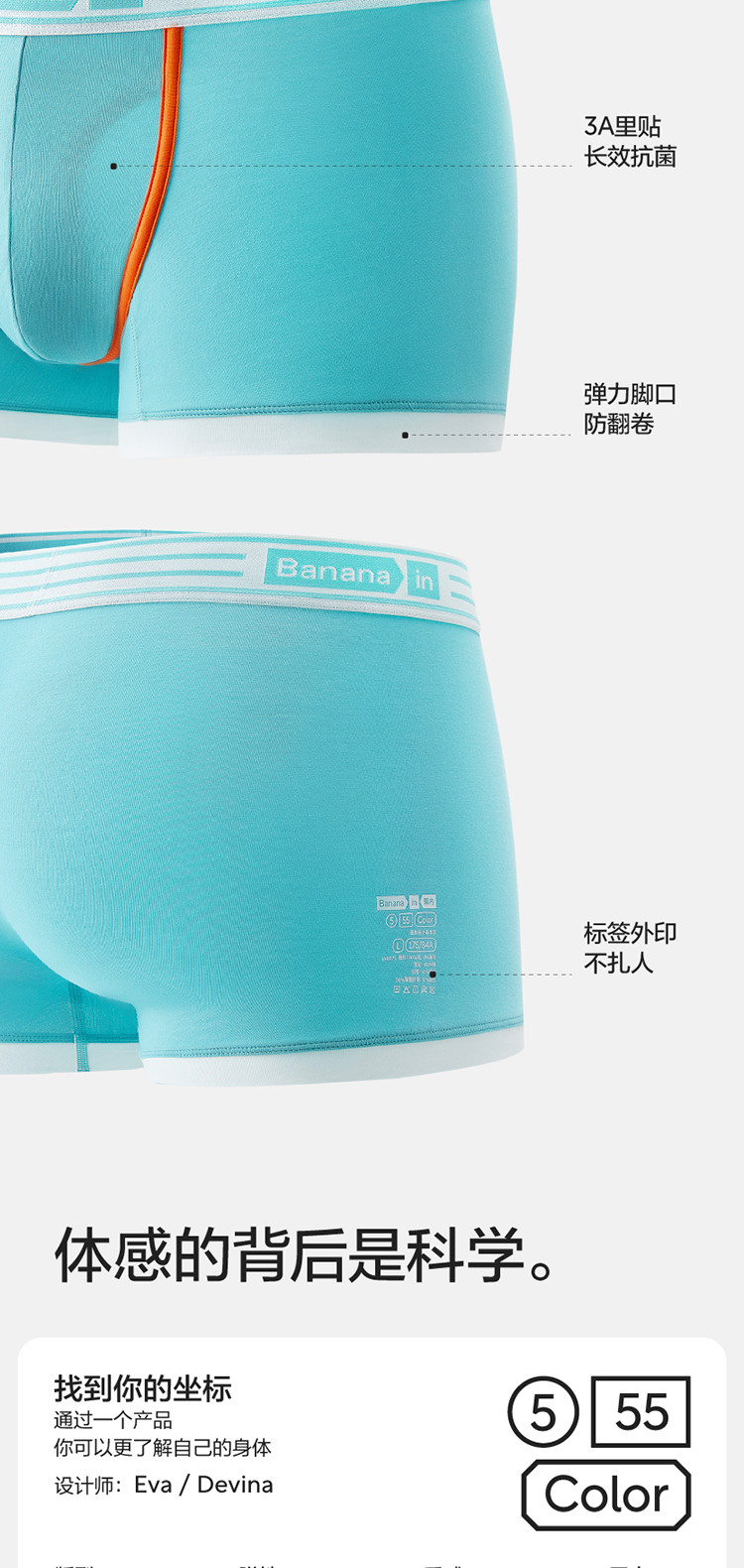 商品名称:555C撞色男士内裤平角底档抗菌透气防夹臀四角短裤头3件 627013