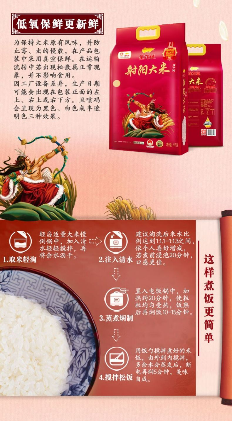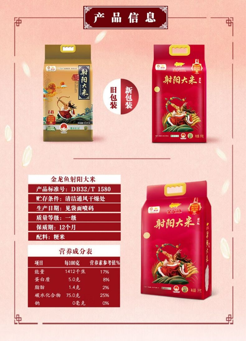 商品名称:金龙鱼大米5KG射阳粳大米10斤袋包装米家用大米饭煮粥 大米5kg