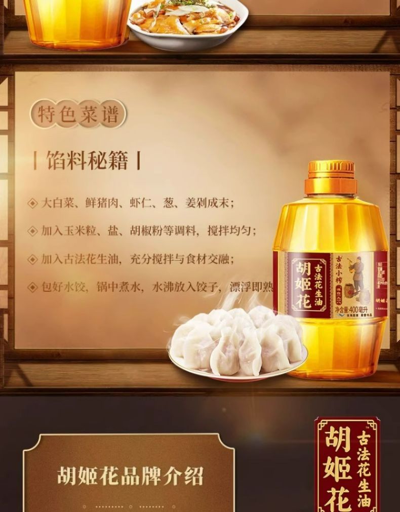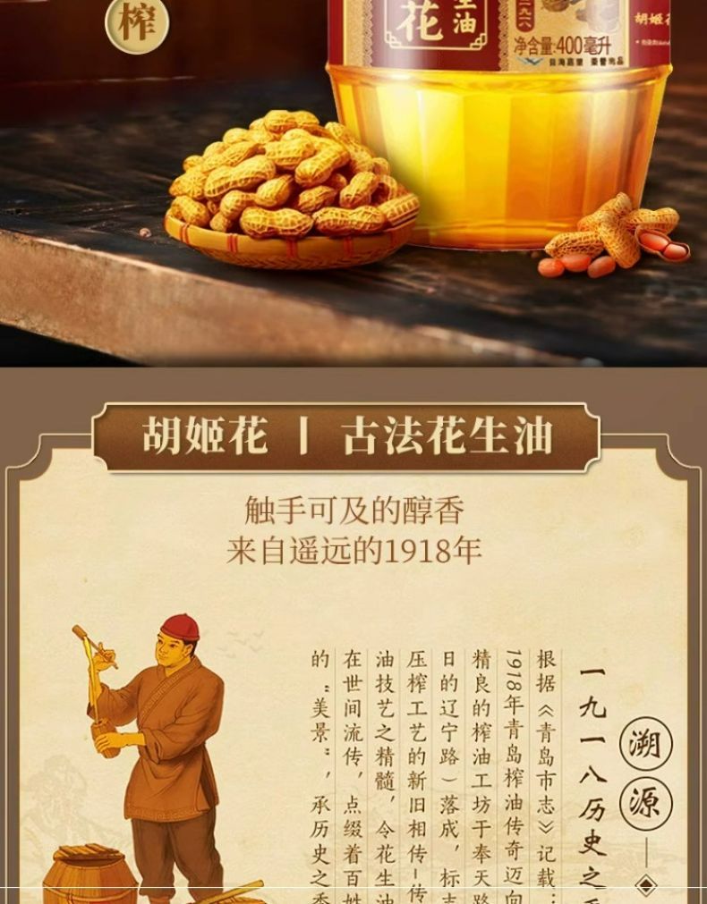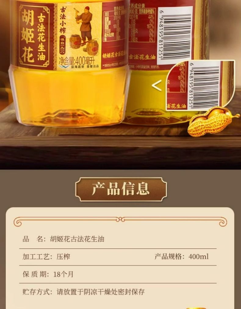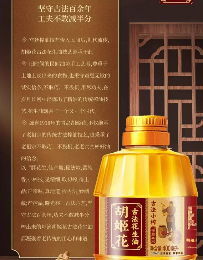 4瓶 古法小榨花生油400ml*4