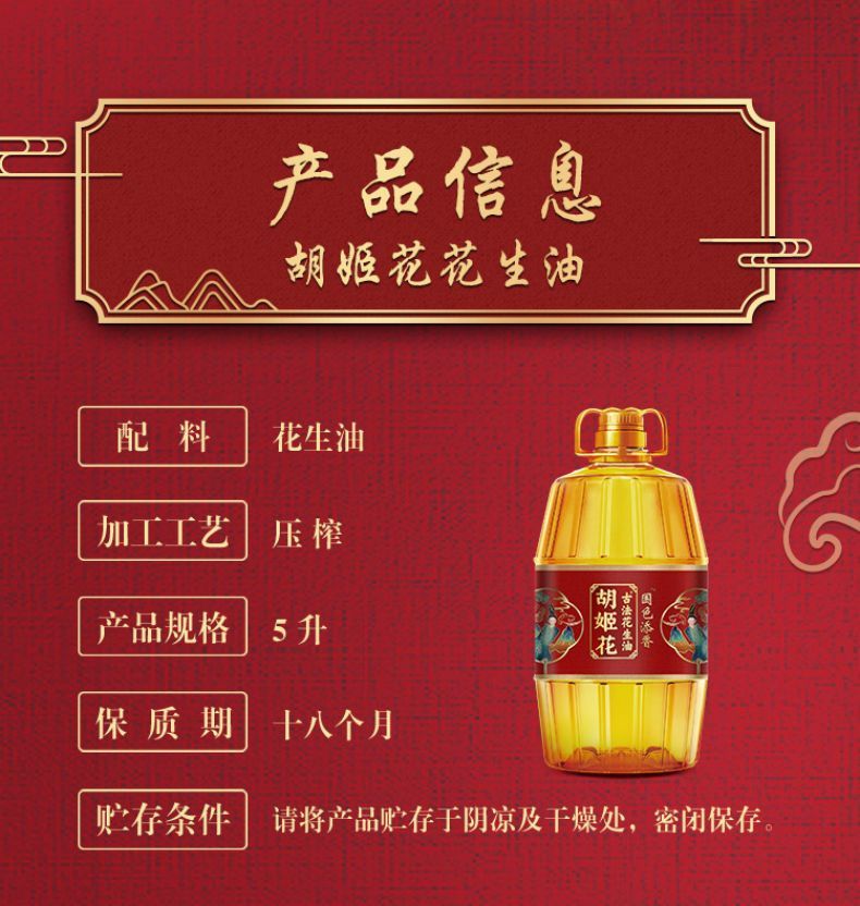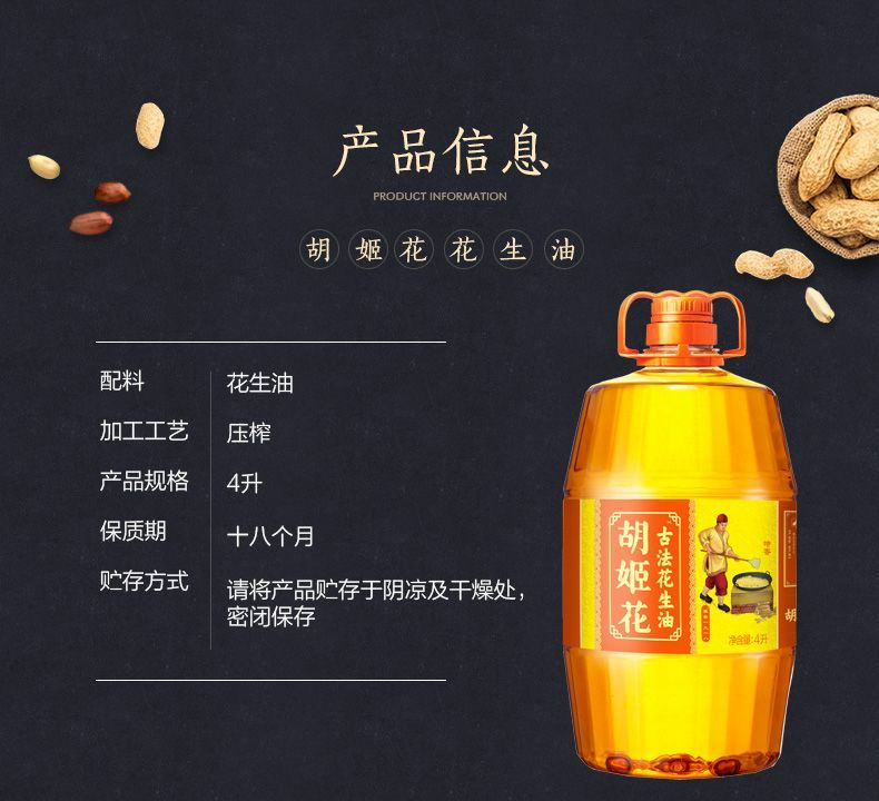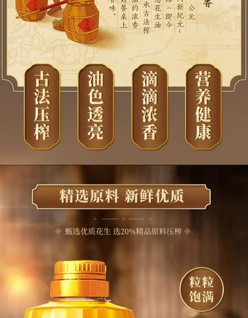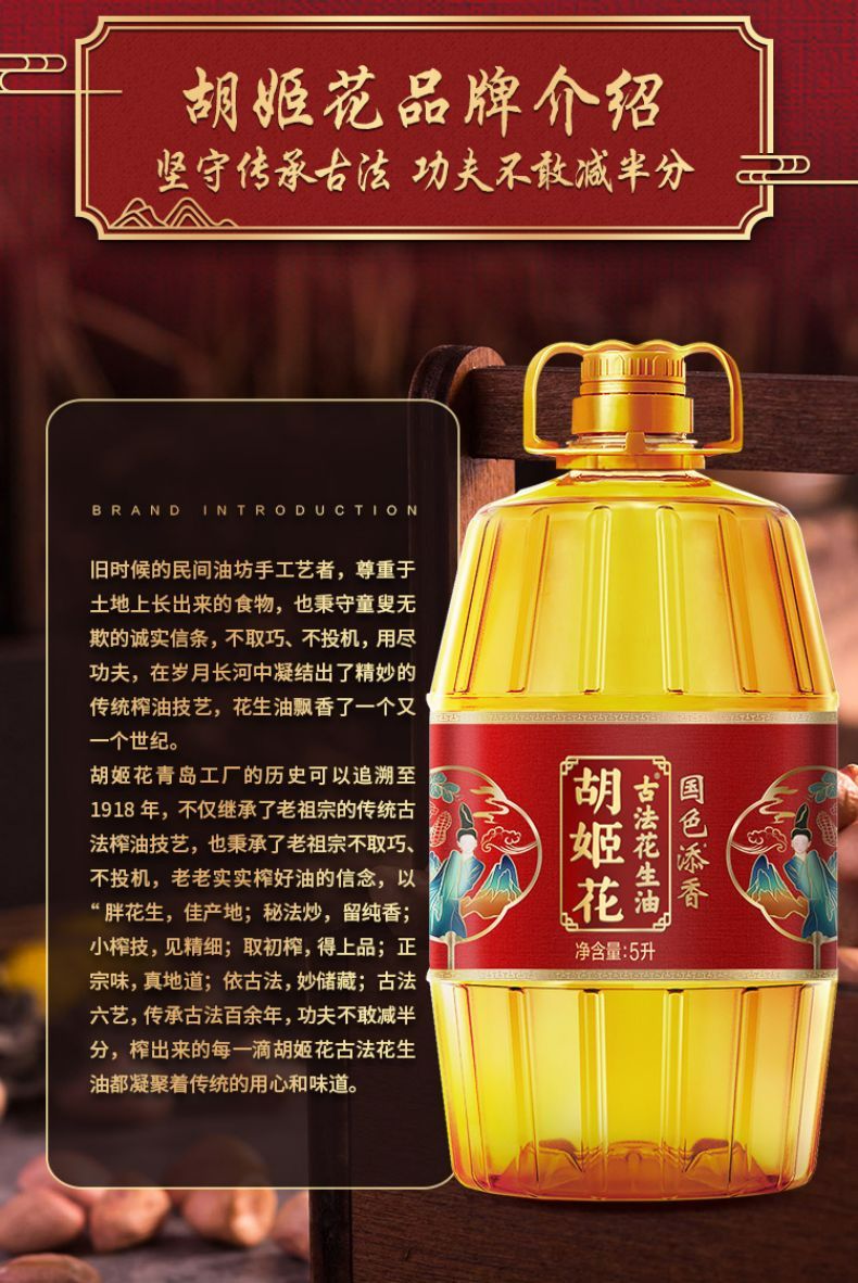 商品名称:胡姬花古法花生油金衣玉食物理压榨食用油 初榨精华家用家庭装送礼佳品