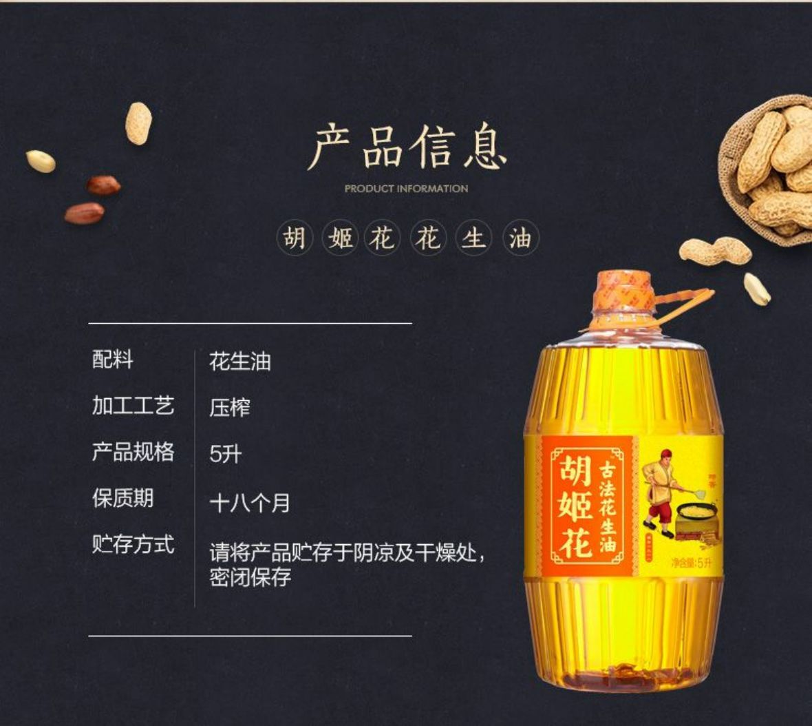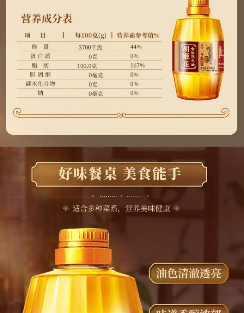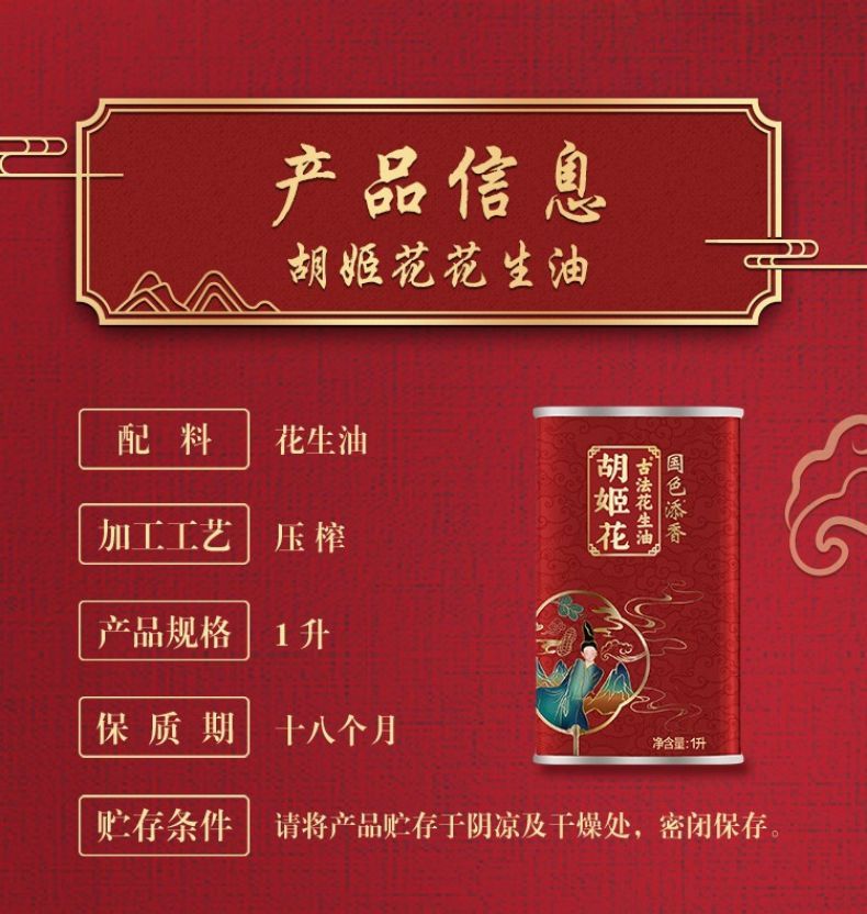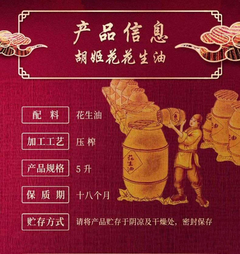 商品名称:胡姬花古法花生油金衣玉食物理压榨食用油 初榨精华家用家庭装送礼佳品