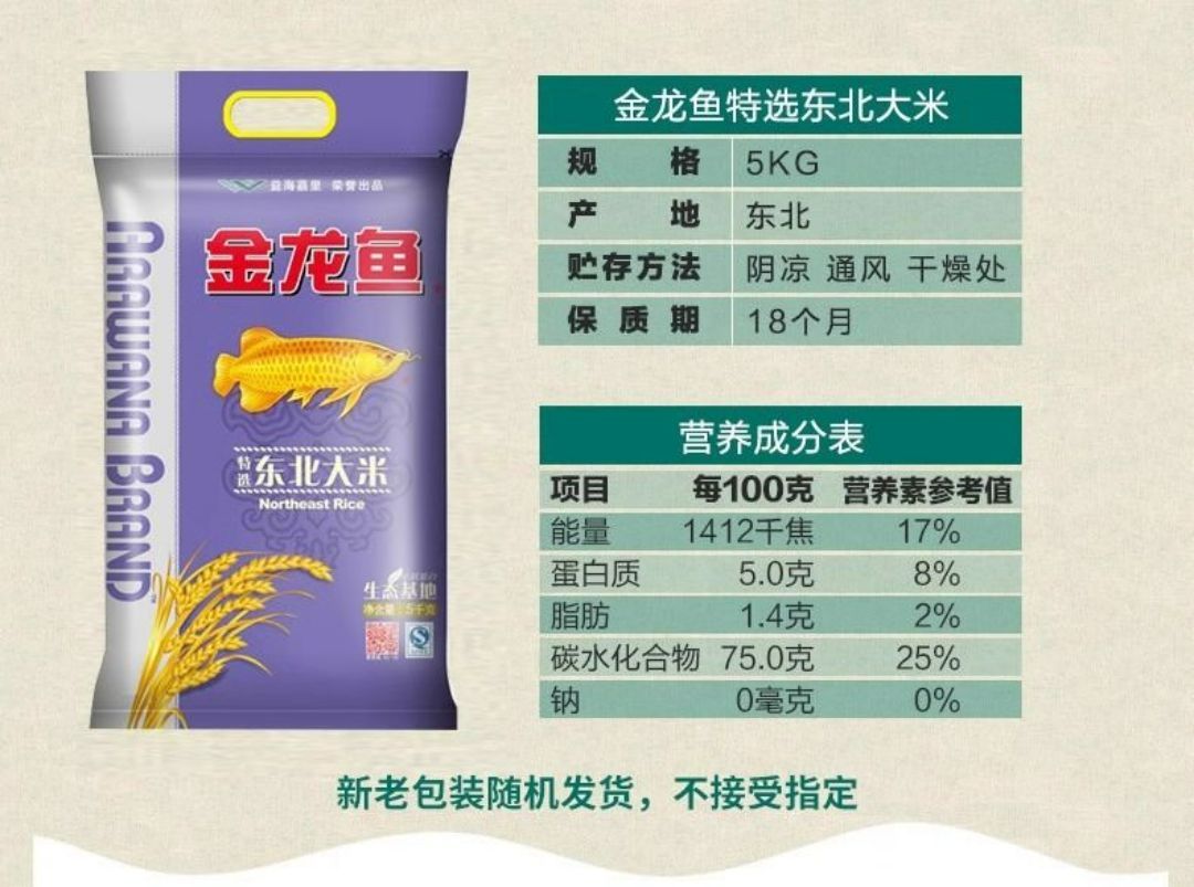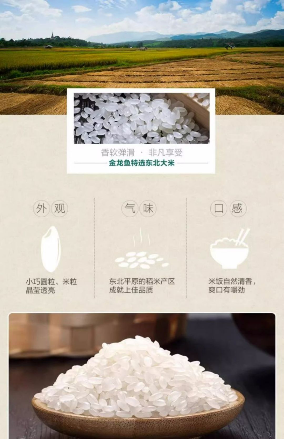商品名称:金龙鱼特选东北大米 5kg 细腻软香 米粥食品五谷 福利团购送礼 日期新鲜