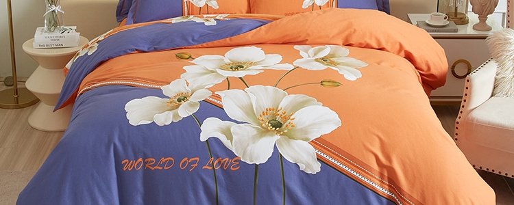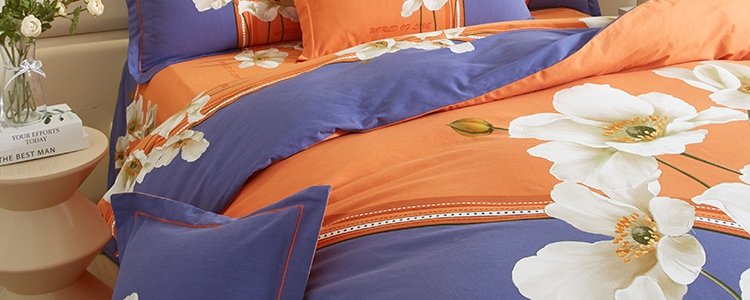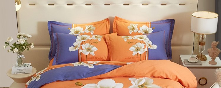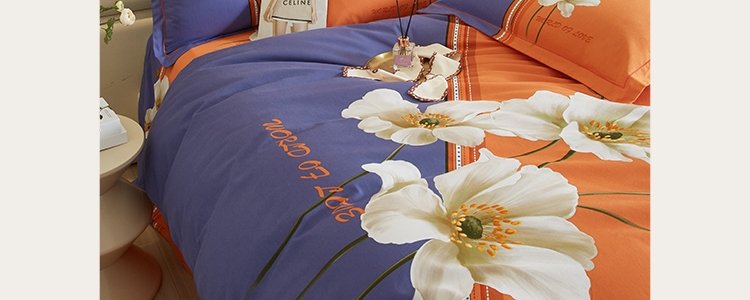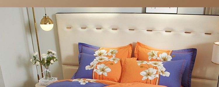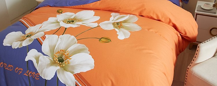 商品名称:豆豆羊家纺 全棉大版印花磨毛四件套 那时花开-桔(适用于1.5-1.8米床铺)