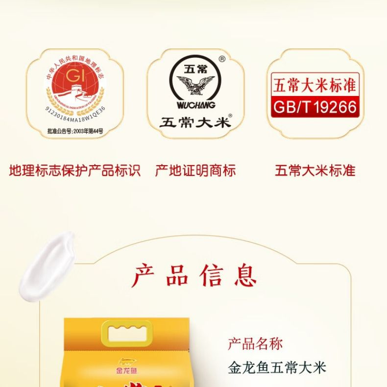 商品名称:金龙鱼祥云瑞鹤 福鹿献瑞来 五常大米5kg 东北大米 低氧锁鲜 新日期