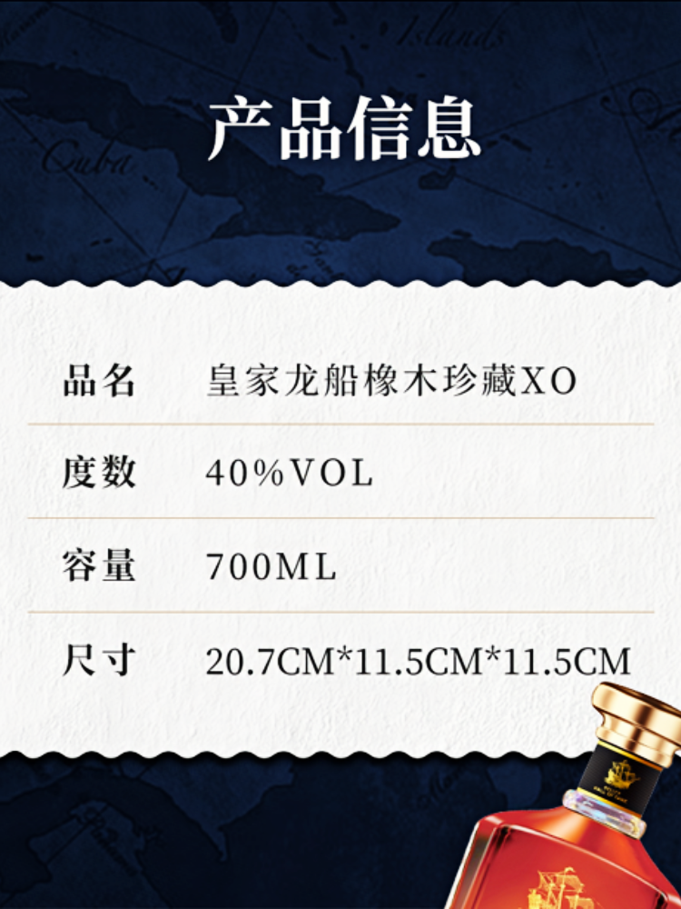 商品名称:凯列名庄40度皇家龙船橡木珍藏XO .700ml