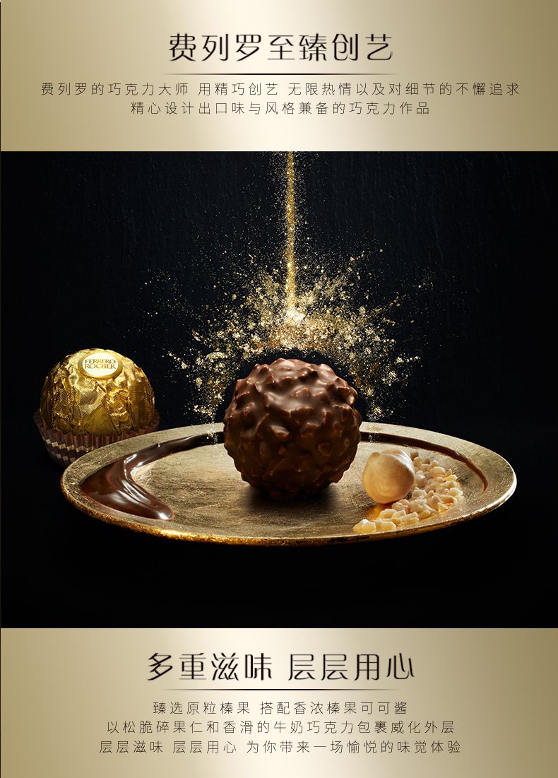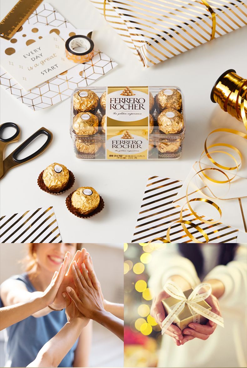 商品名称:费列罗 原装进口巧克力 T16粒 礼盒装 金莎榛果威化200g