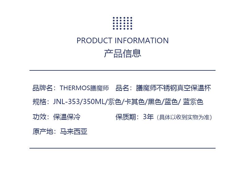 商品名称:日本 膳魔师保温杯-353 350ml 蓝紫色