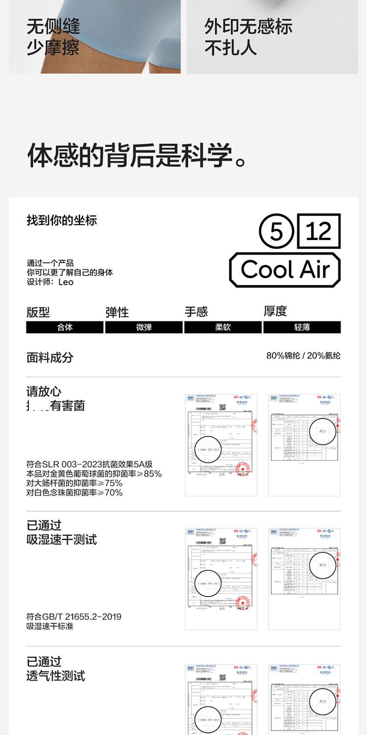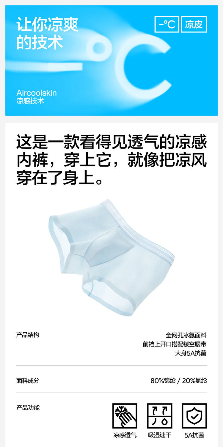 商品名称:凉皮512Cool Air网眼内裤男透气速干轻薄抗菌冰丝感凉 967557