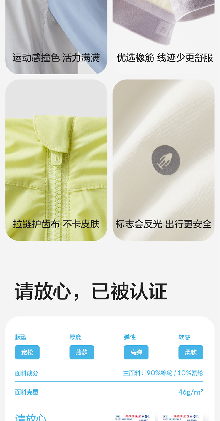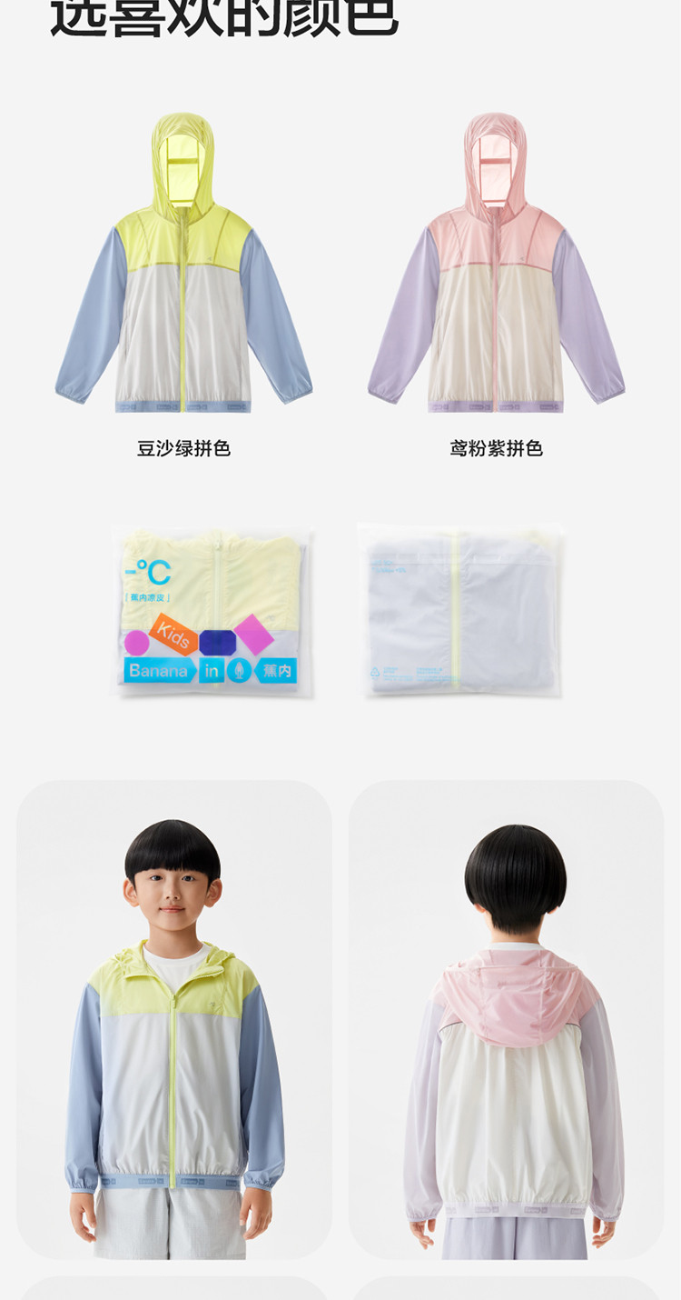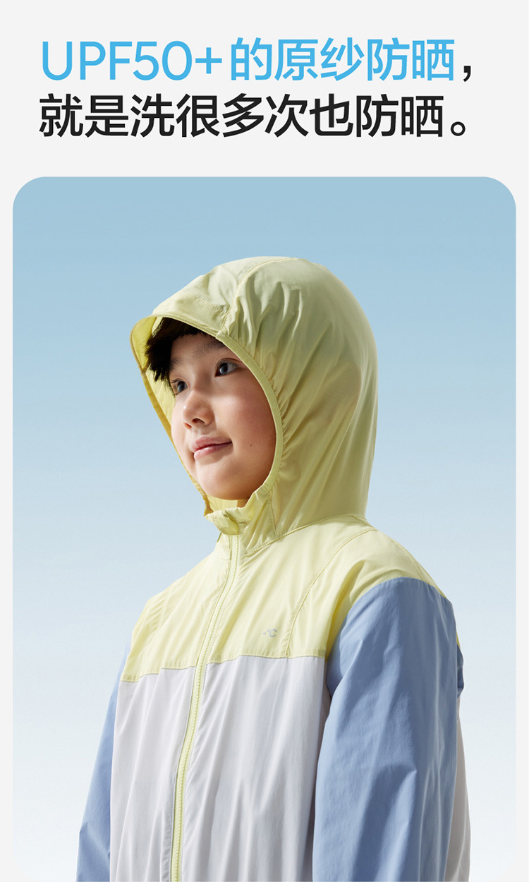商品名称:502UV儿童防晒衣活力拼色凉感透气春夏外套户外运动皮肤衣 013701