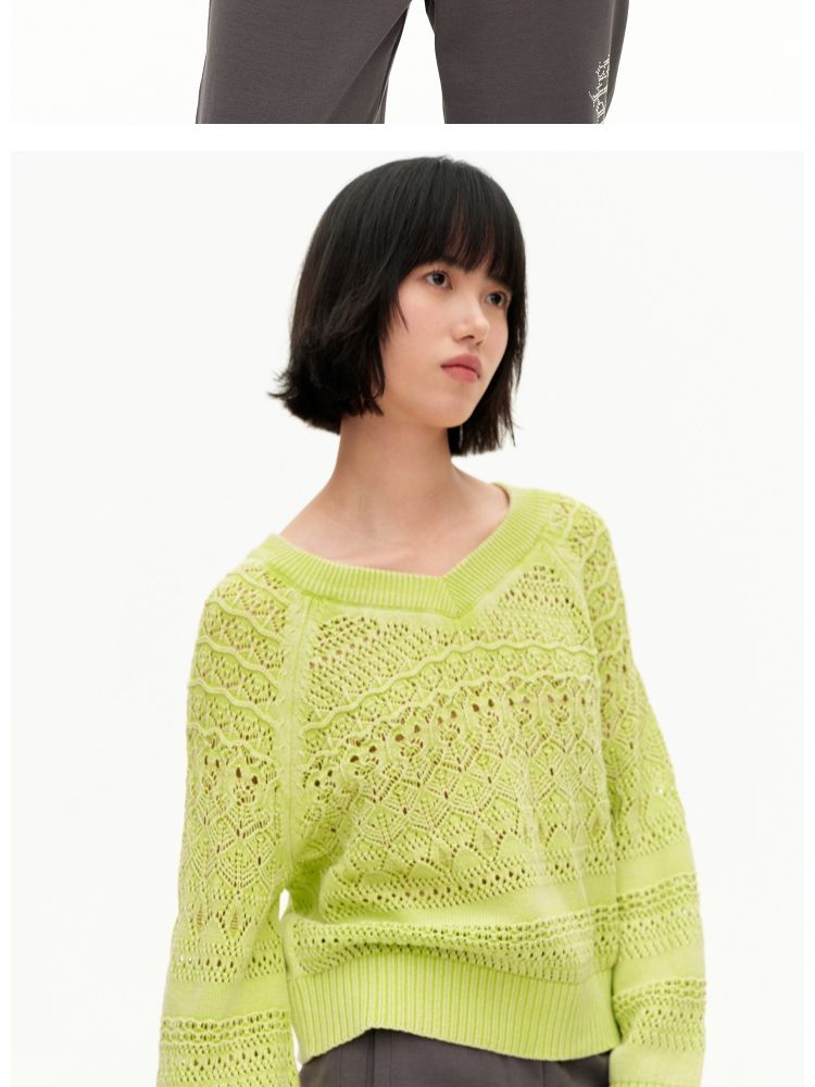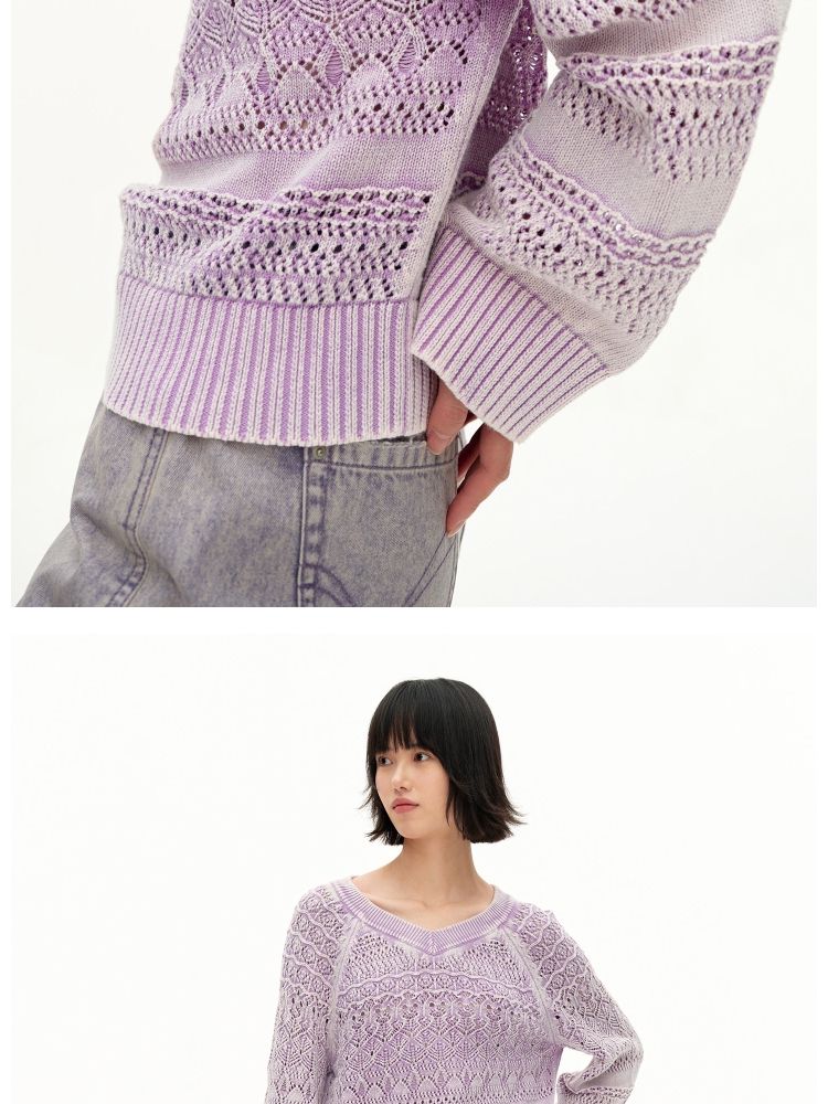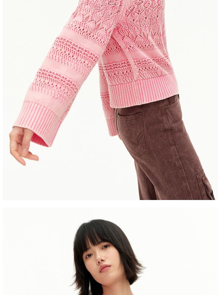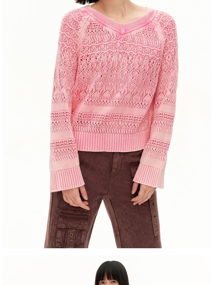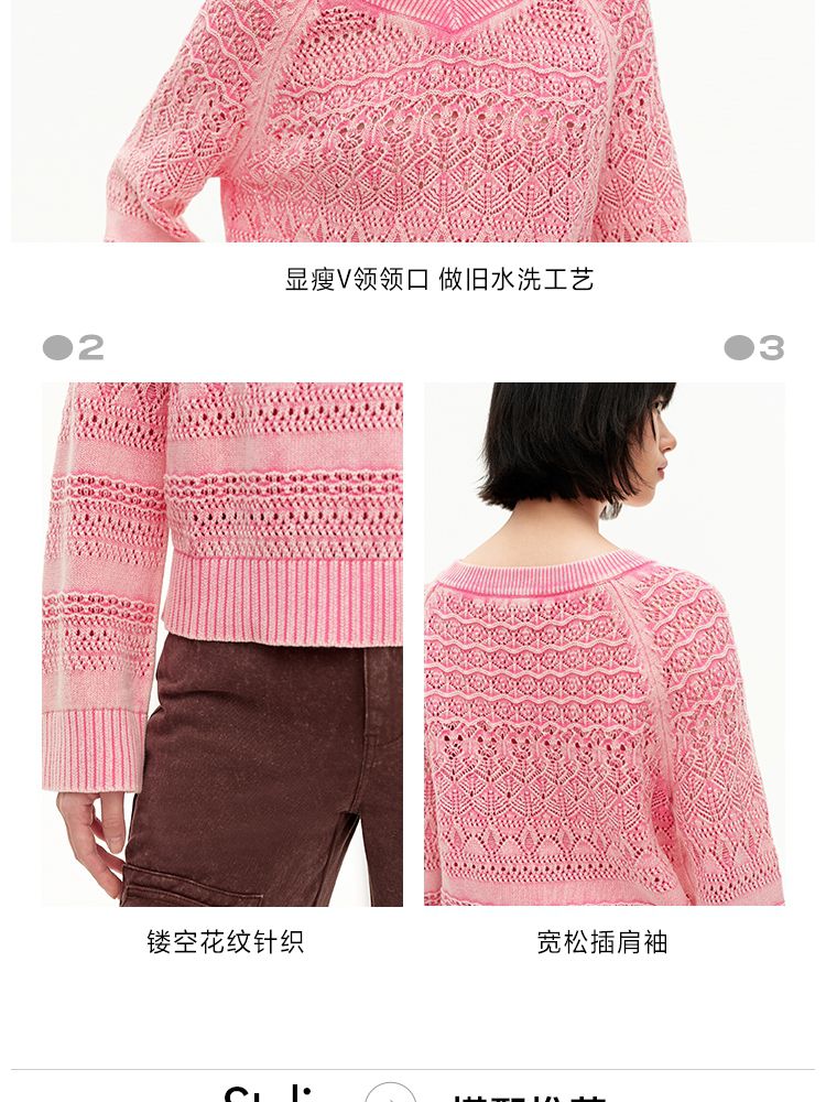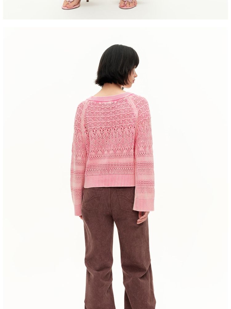 【做旧水洗】春季时尚镂空宽松花纹针织衫女 743578