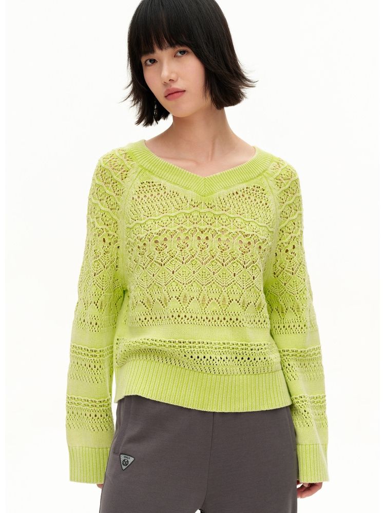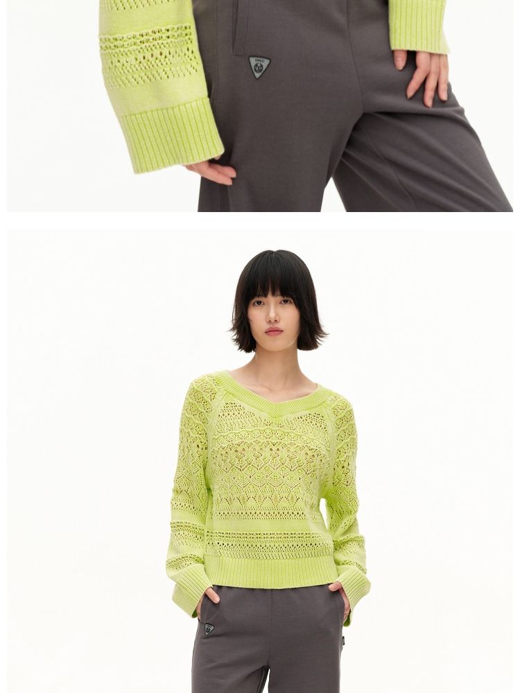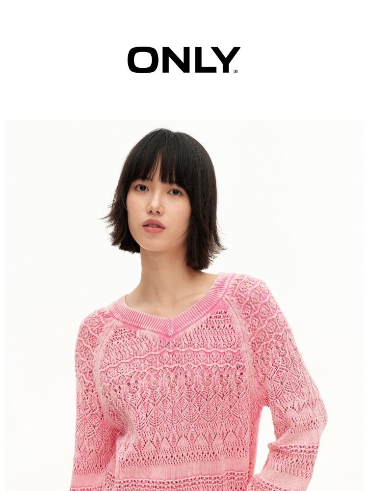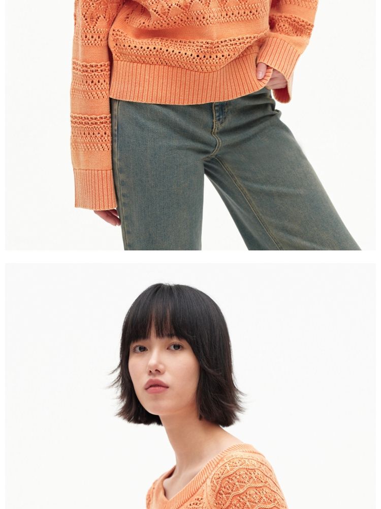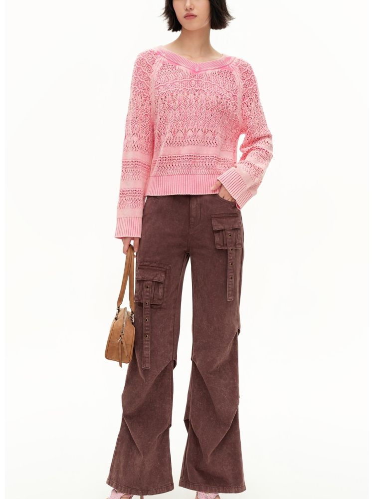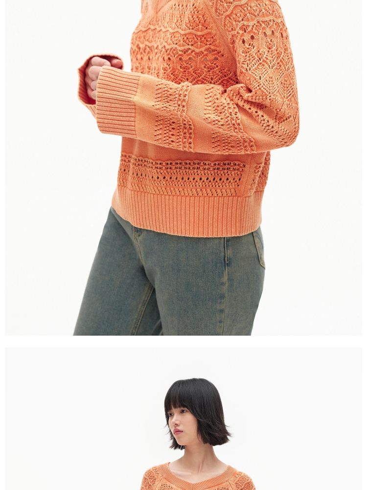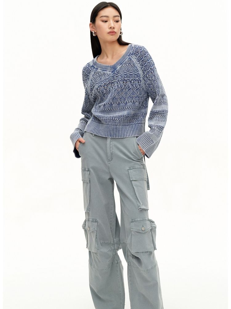 【做旧水洗】春季时尚镂空宽松花纹针织衫女 743578