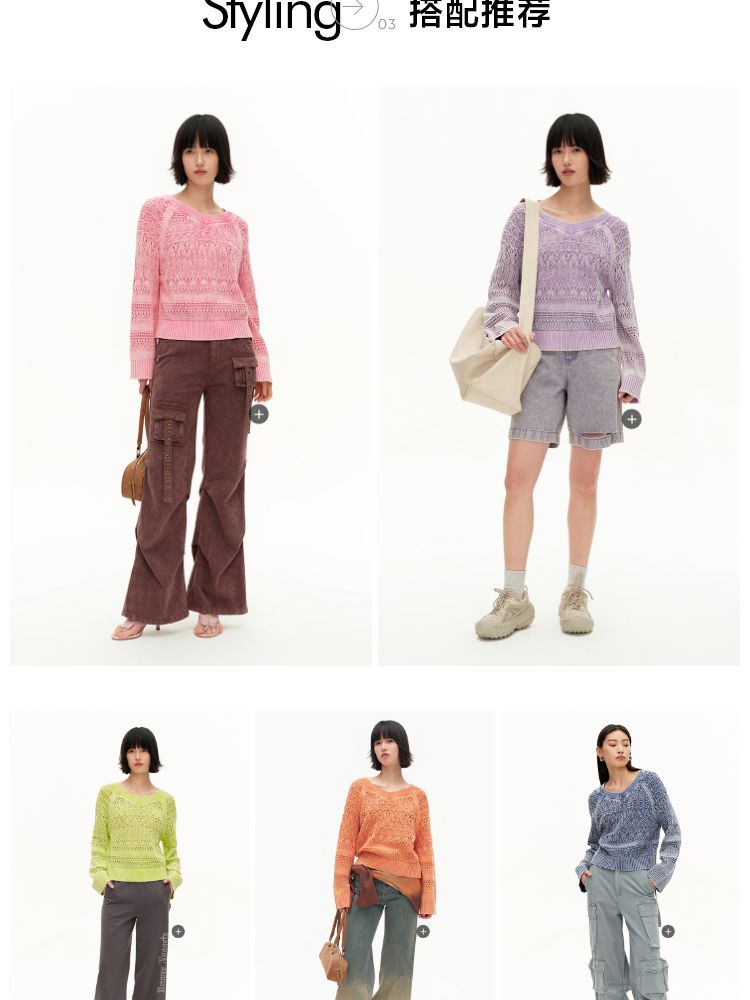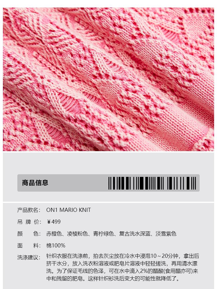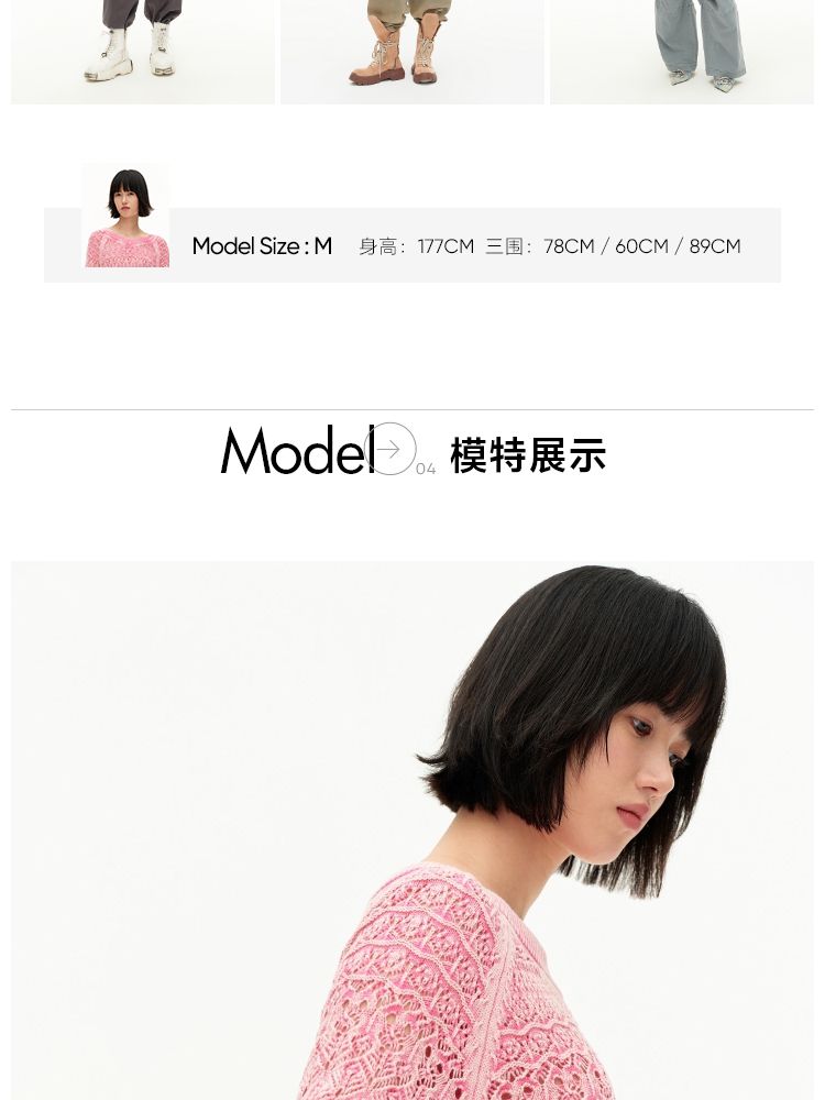 商品名称:【做旧水洗】春季时尚镂空宽松花纹针织衫女 743578