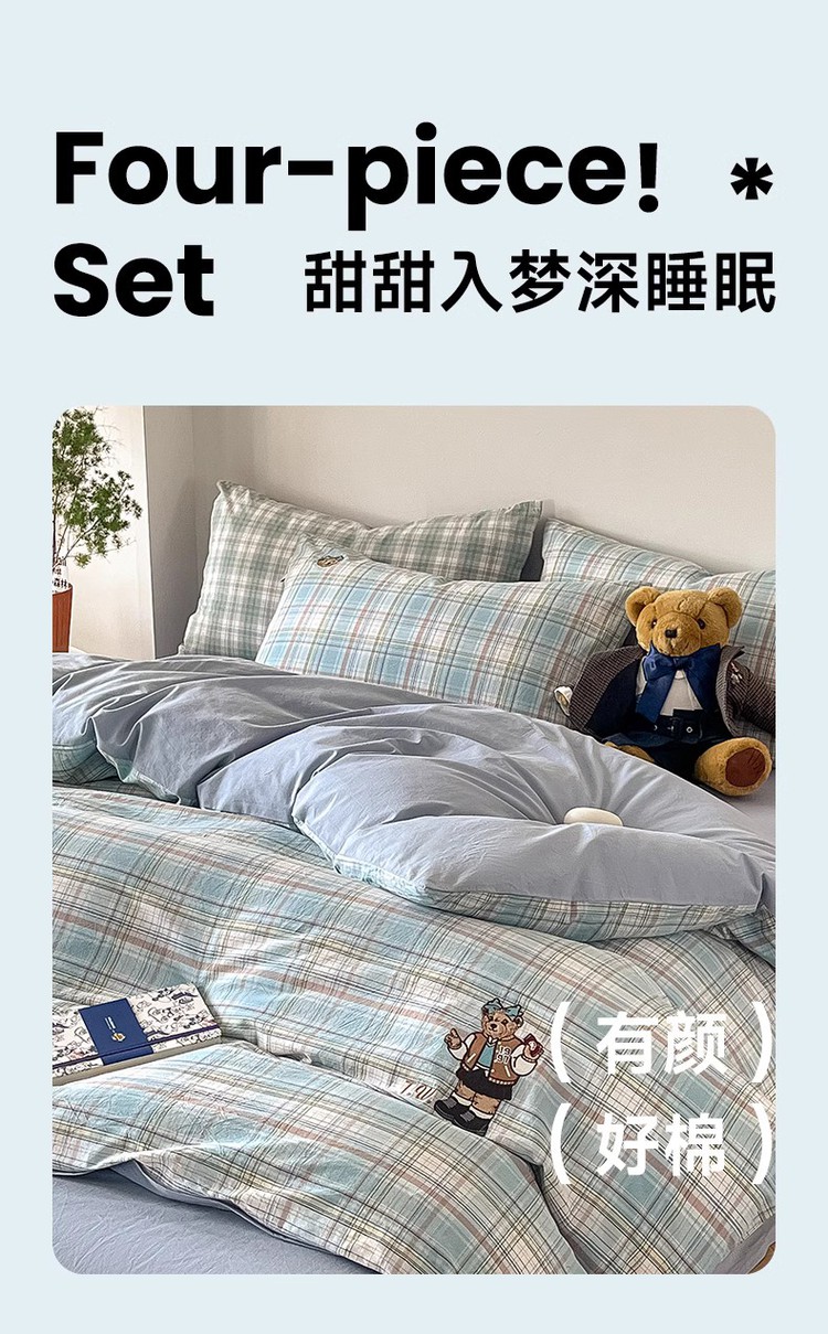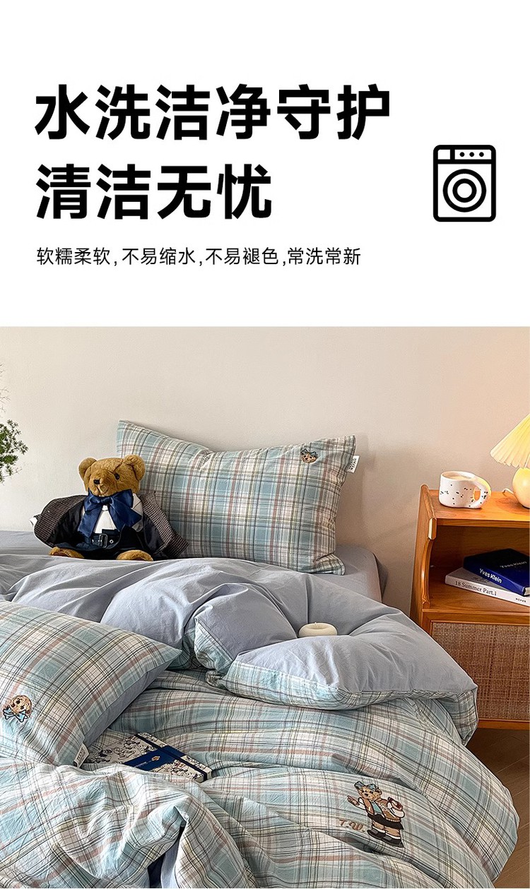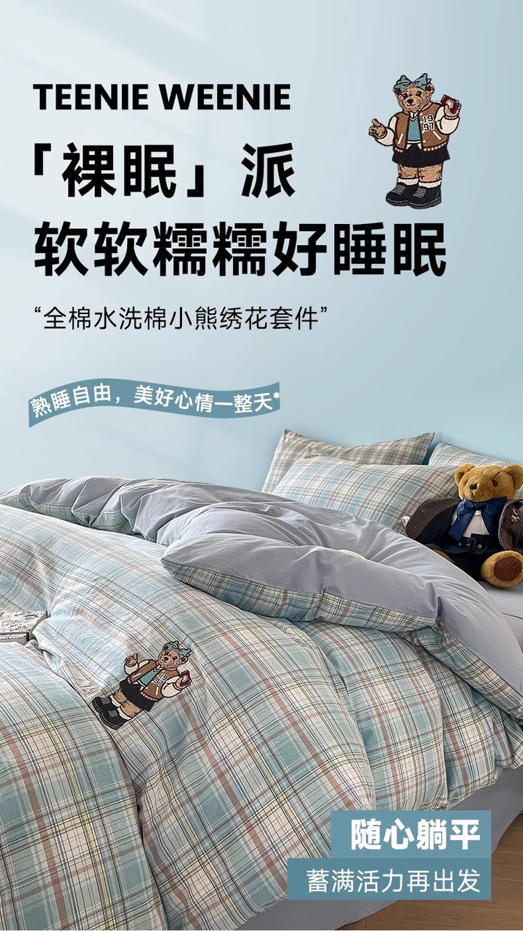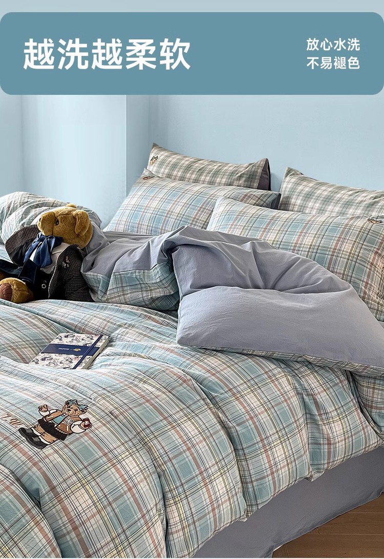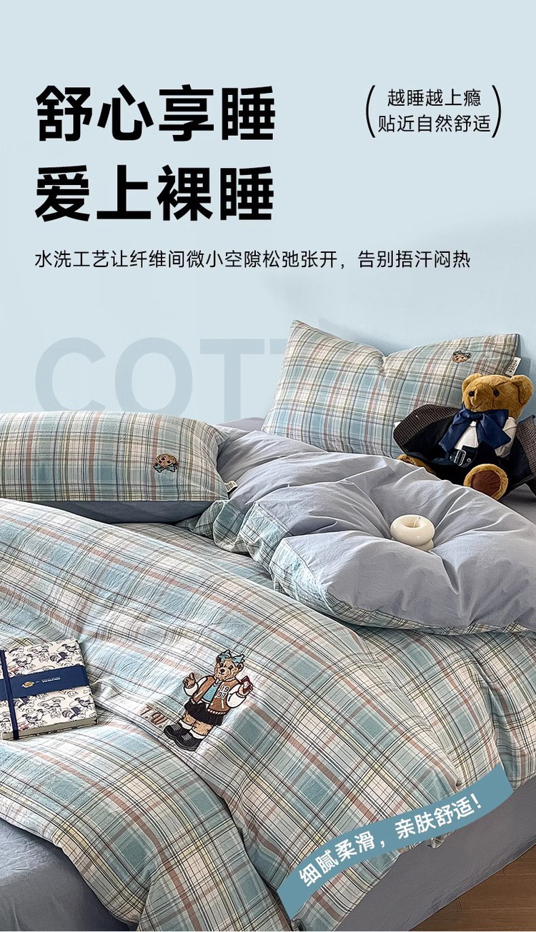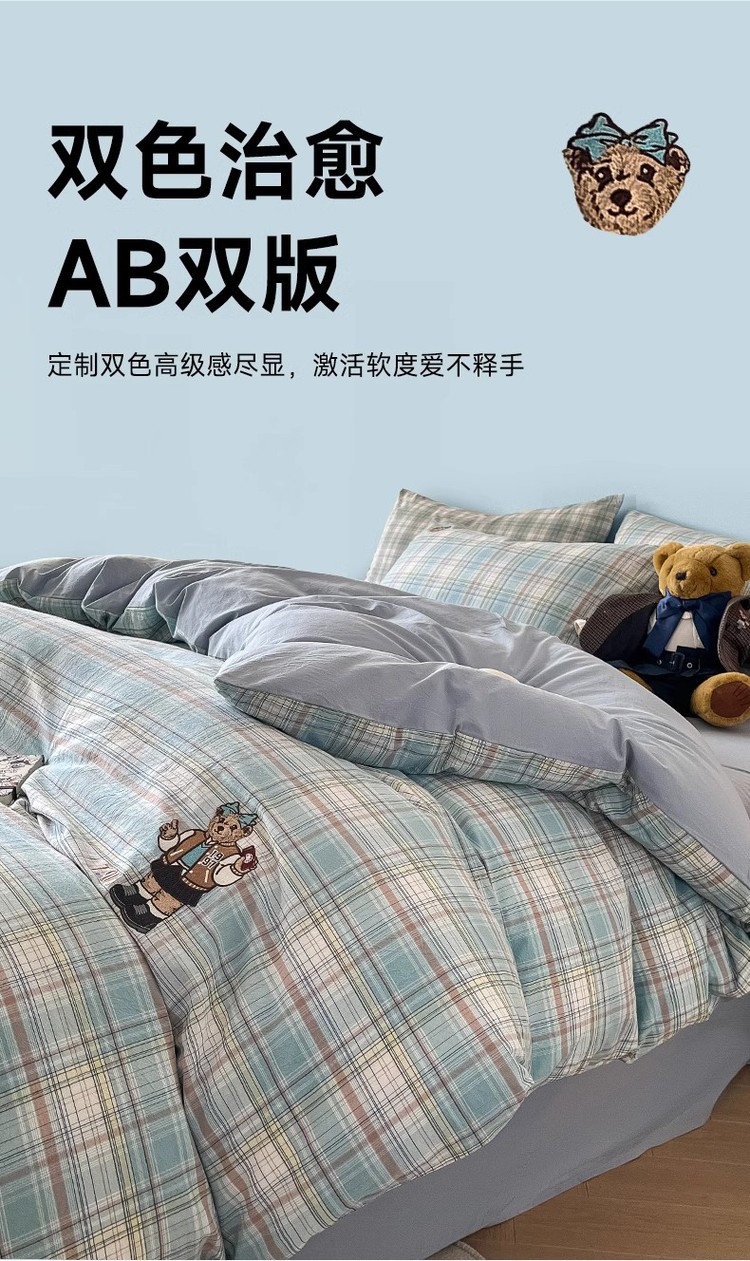 【简约学院风】小熊全棉四季套件春夏纯棉被套床单宿舍三/四件套 416796