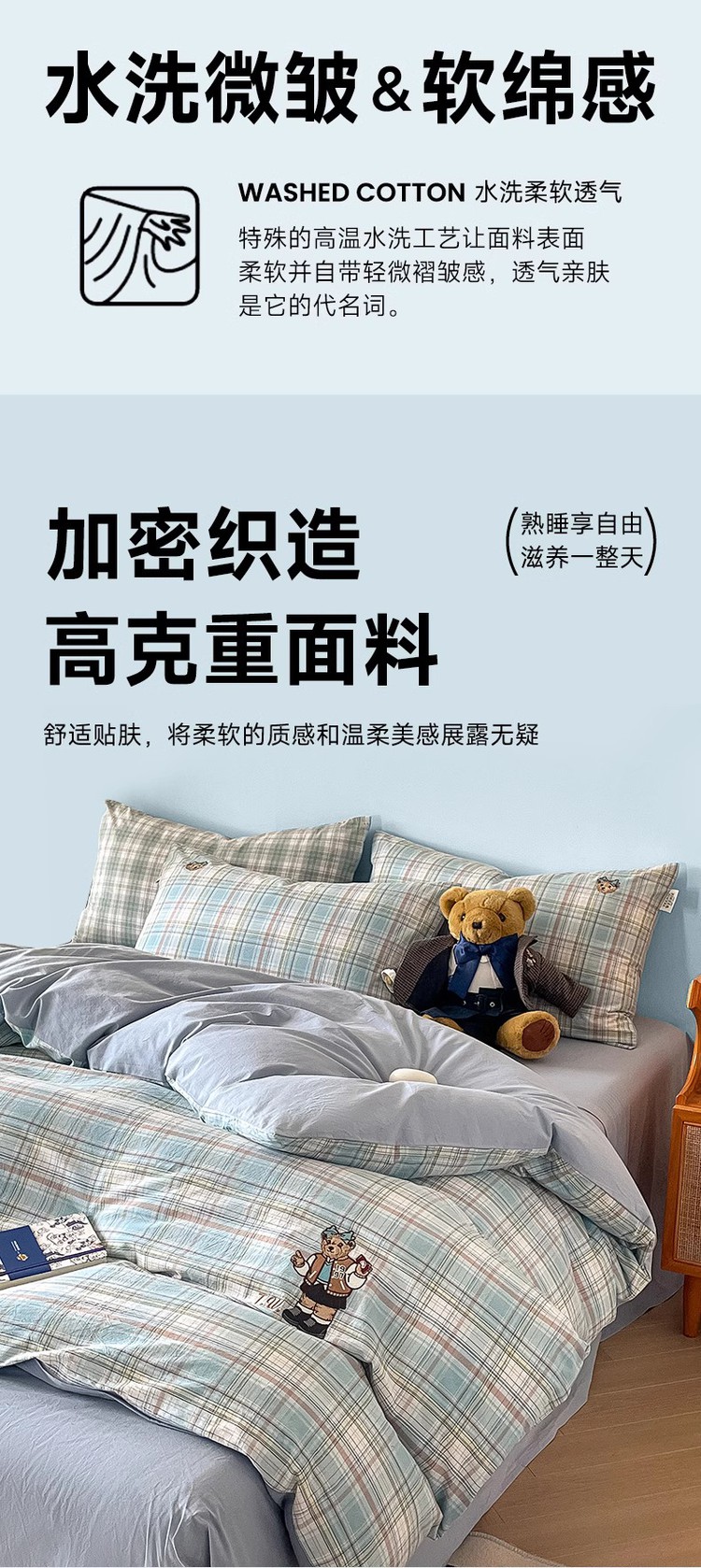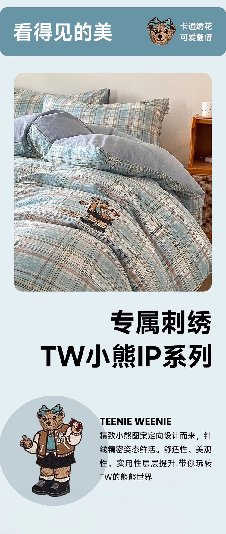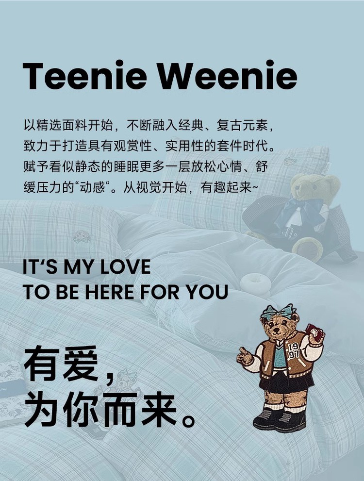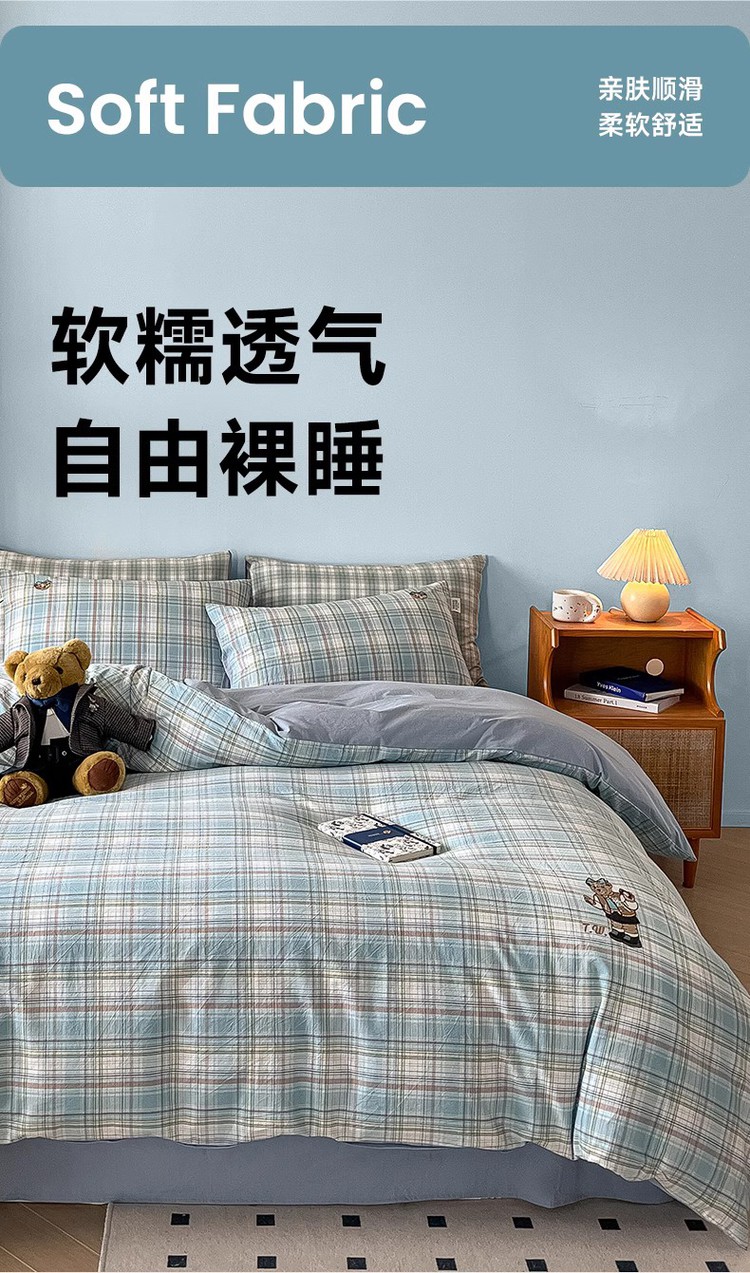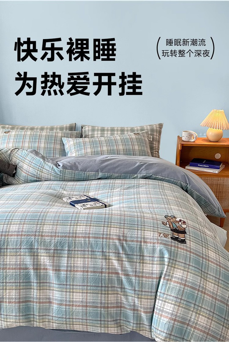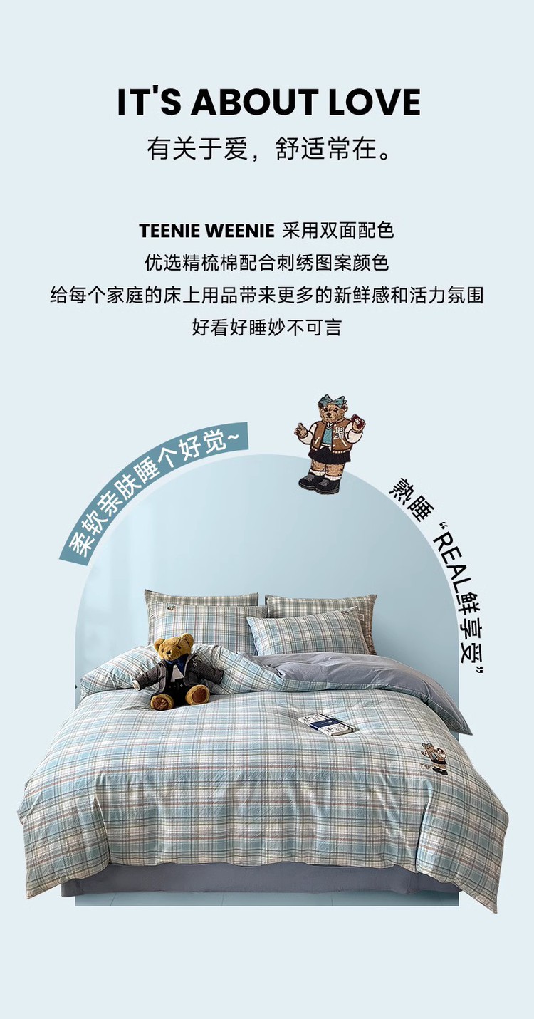【简约学院风】小熊全棉四季套件春夏纯棉被套床单宿舍三/四件套 416796