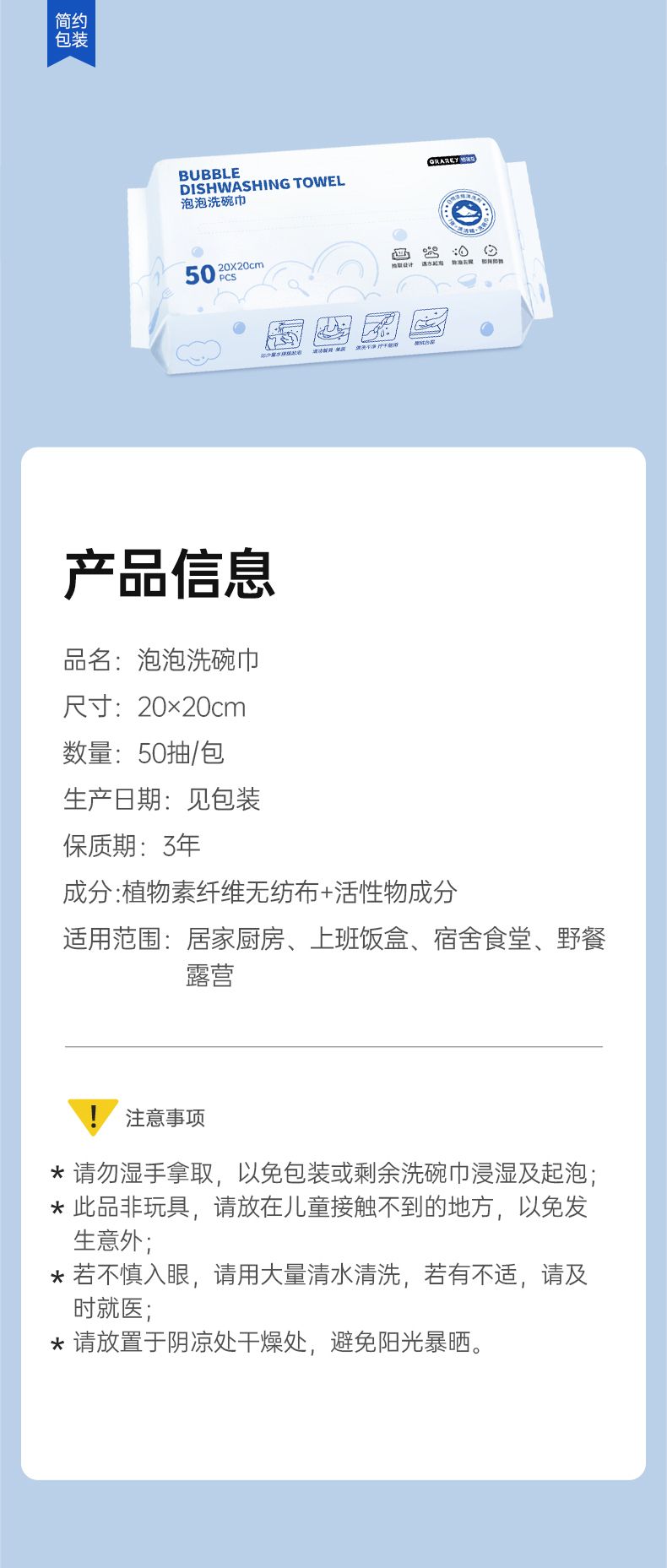 商品名称:格瑞亚泡泡洗碗巾50片/包*3包