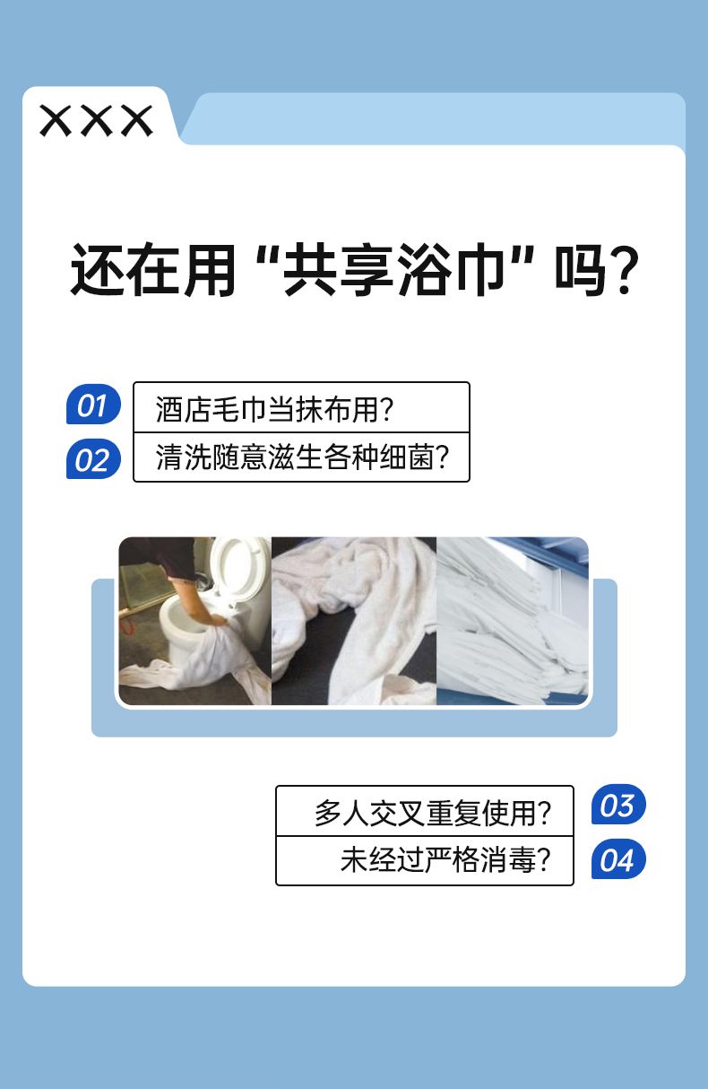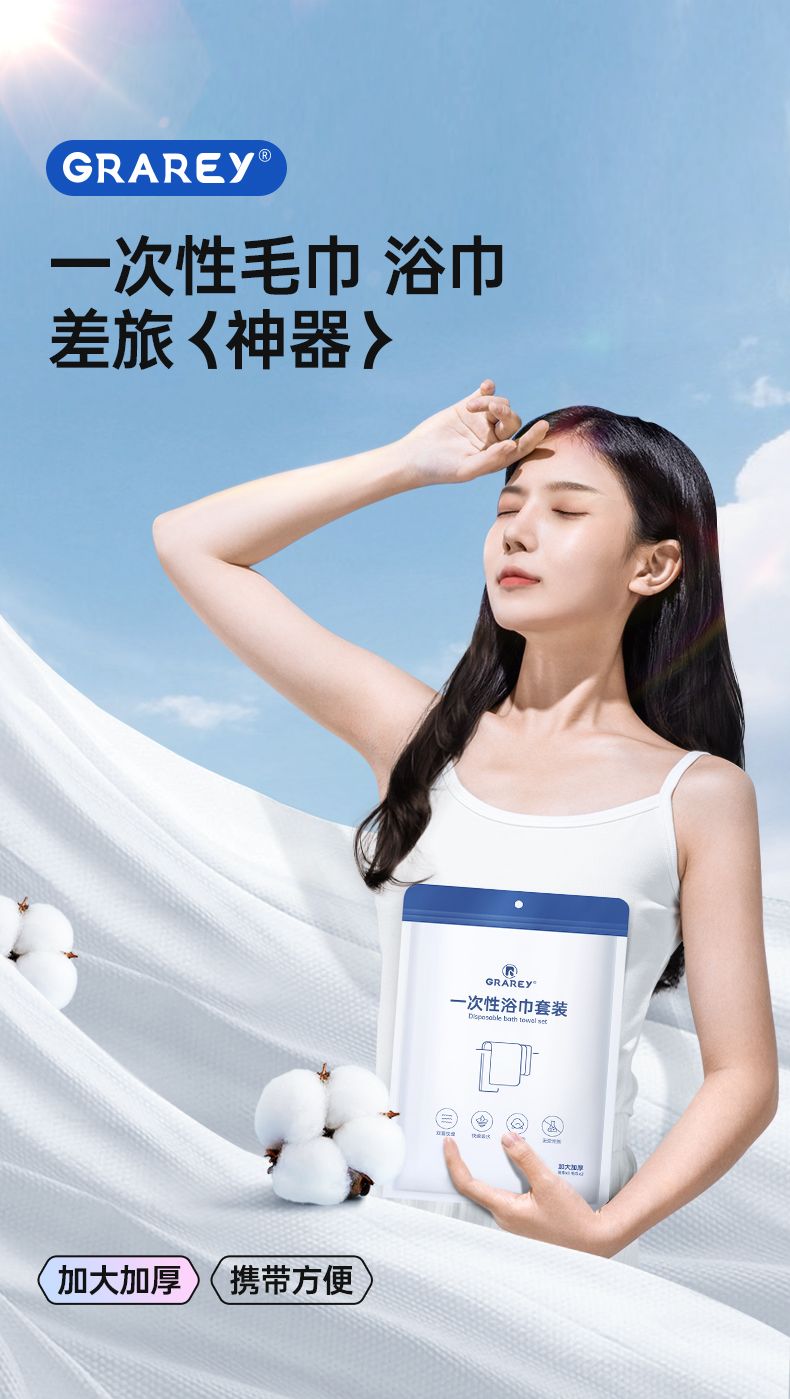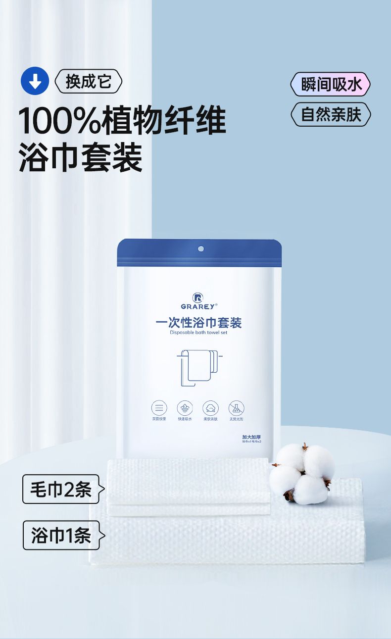 商品名称:格瑞亚一次性浴巾套装 85%加厚 (4条浴巾+8条毛巾)